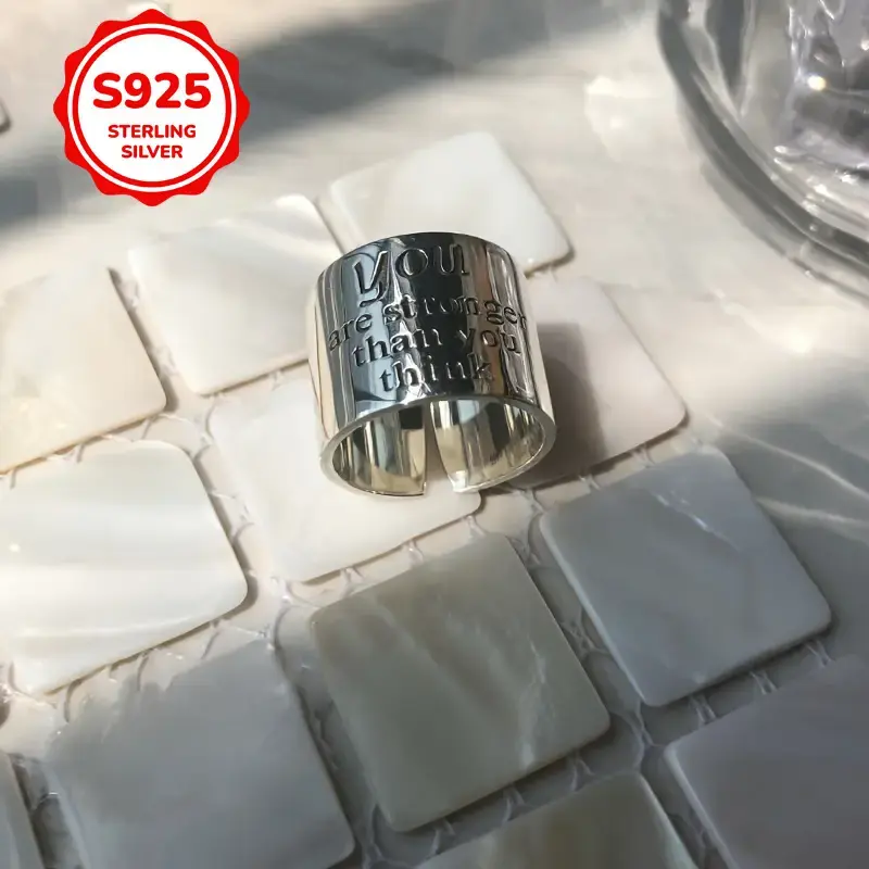 Letter inspirational ring, 925 silver ring, inspiration carving, adjustable size ring, hypoallergenic broadband, fashionable and diverse, classic and eye-catching jewelry, suitable for daily and party wear