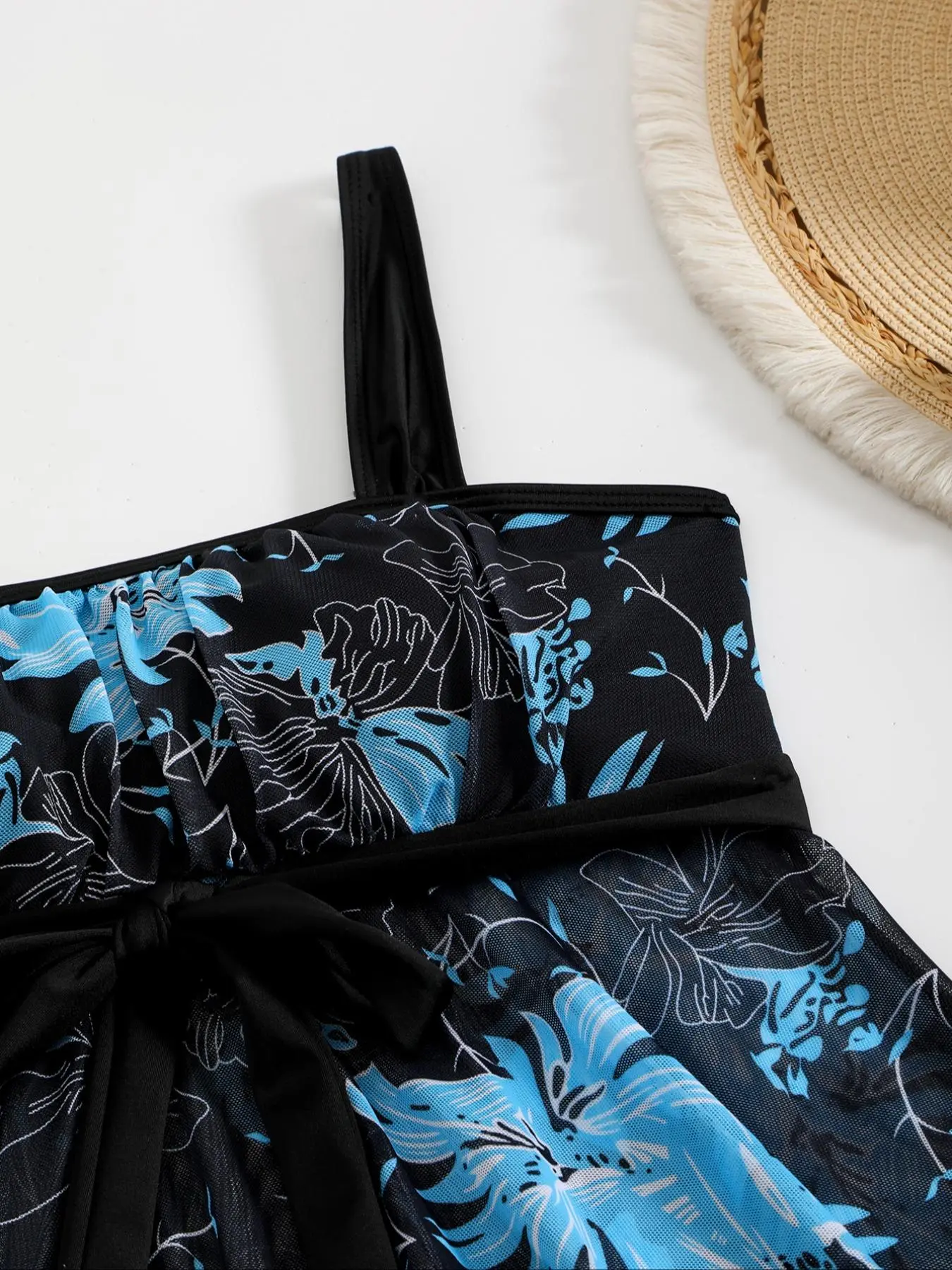 Women's Floral Print Tankini Set, Casual Sleeveless Swim Top & High Waist Swim Bottom Swimsuit for Beach Holiday Vacation, Ladies Swimwear for All Seasons, Tankini Outfit, Floral Pattern Tankini, Tankini Bathing Suits