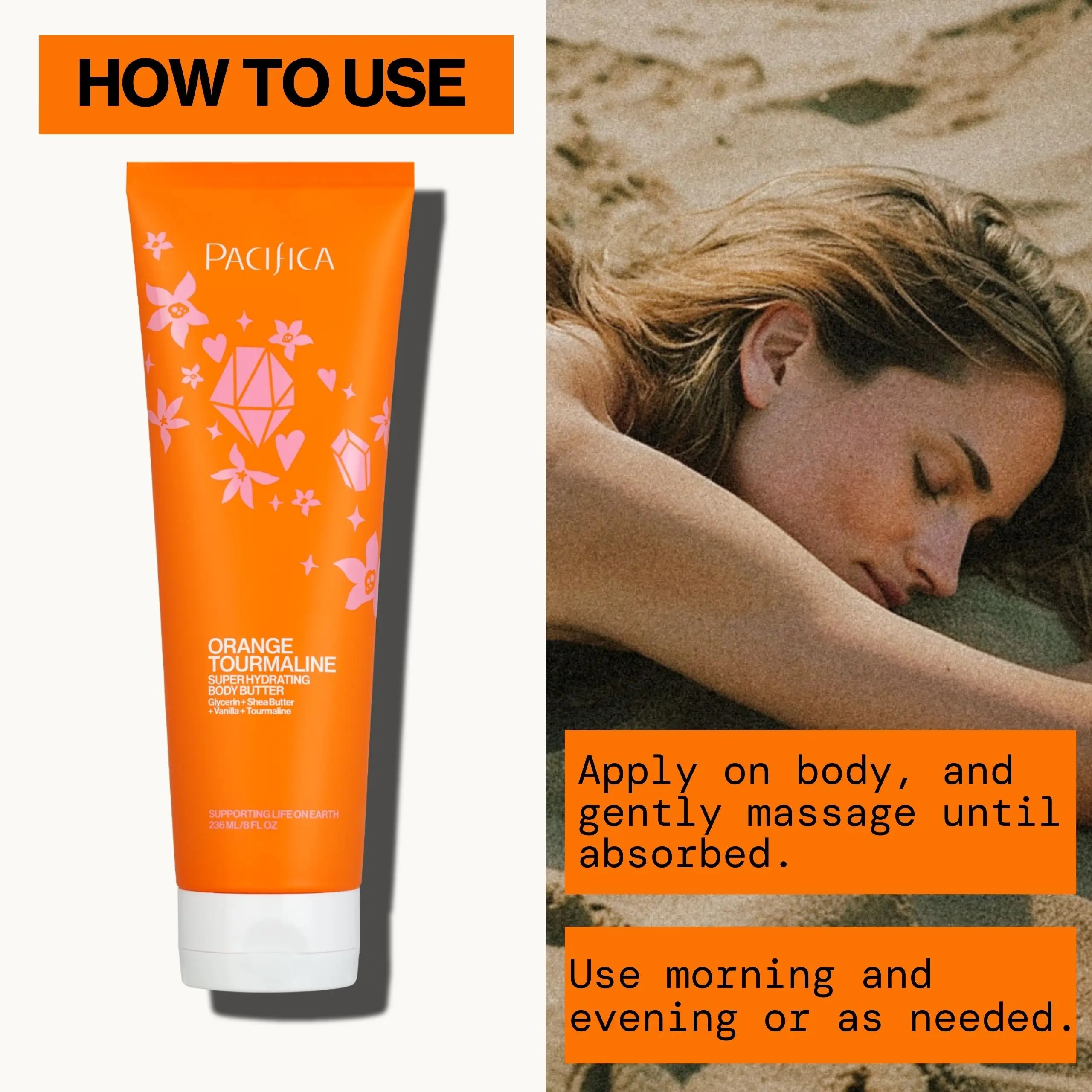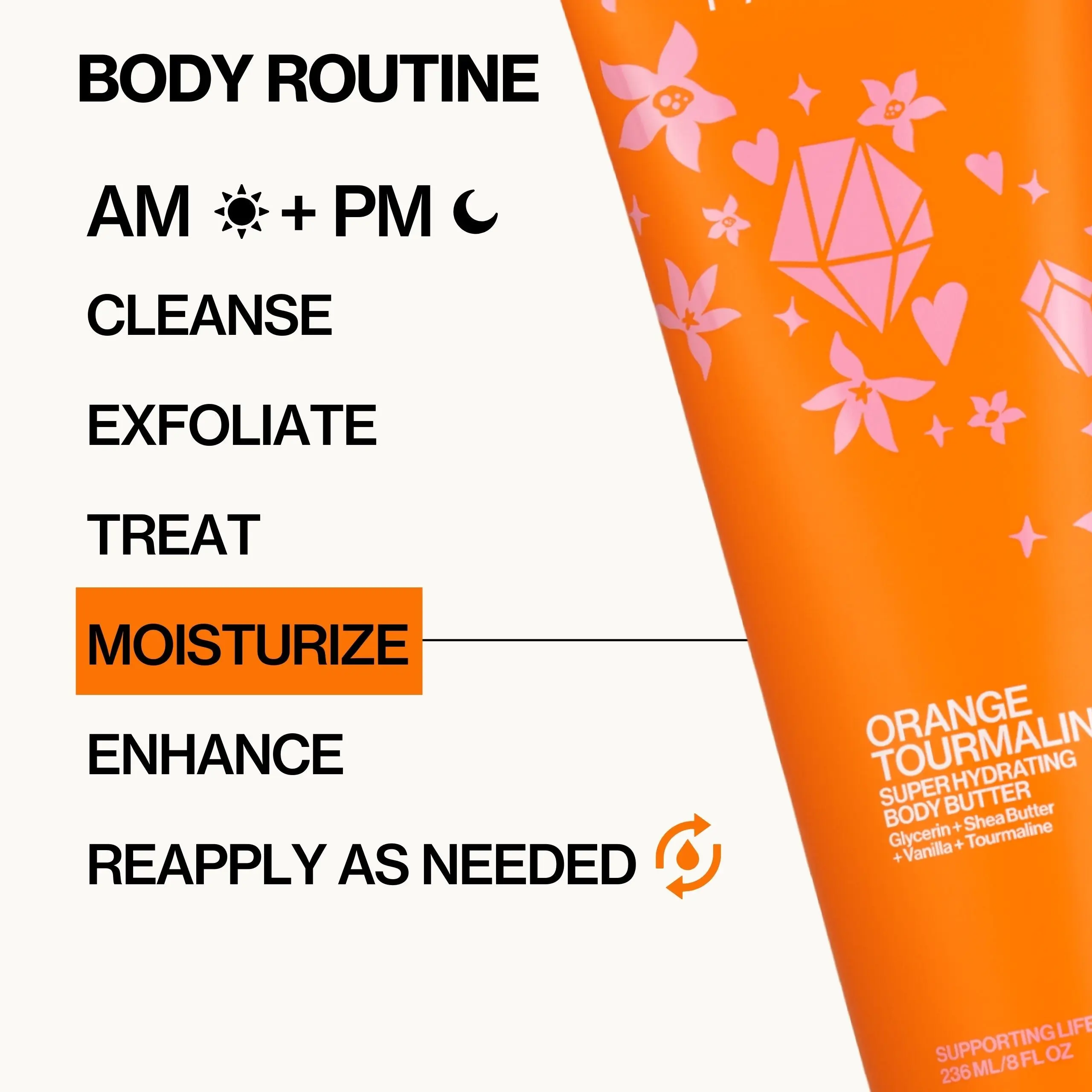 Orange Tourmaline Super Hydrating Body Butter is a rich, super-hydrating body butter full of high vibration ingredients including quartz, tourmaline and natural butters to deeply nourish and hydrate skin. Dermatologist-tested for your skin's well-being.