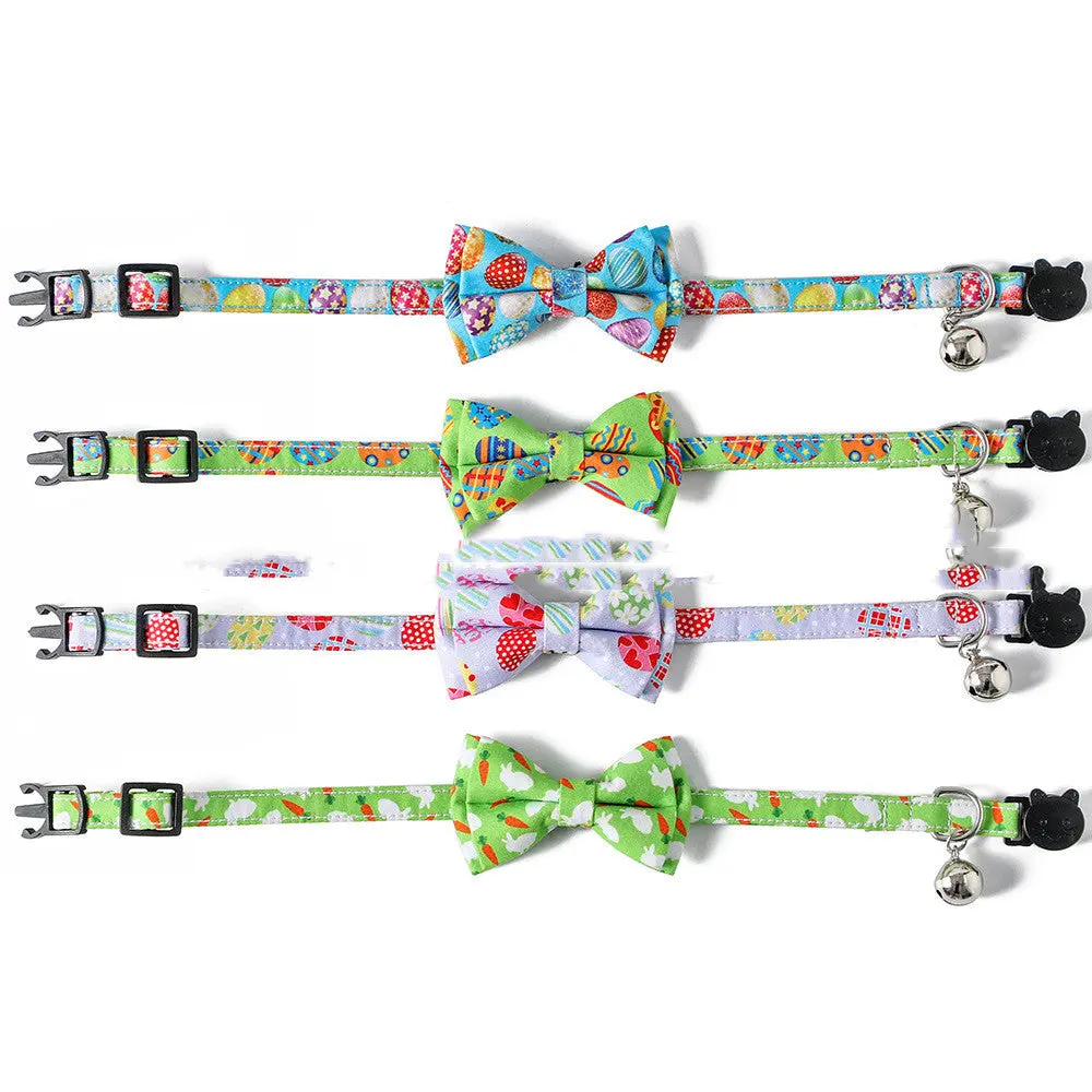 Product name: Easter Cat collar Product features: bow removable, non - fixed. The collar is fitted with a bell and the bell can be removed Size: S: 28*1.0cm (L * W), adjustment range 15-28cm Net weight: 13g Material: Polyester