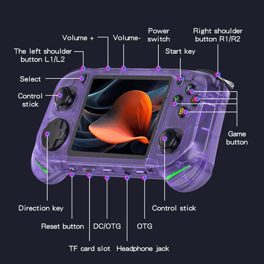 WUDS RX6H Retro Handheld Game Controller with 64 Bit Processor, 3.5-Inch HD Screen, Extended Battery Life for Hours of Play, Portable Game Controller Protection White Gaming Items