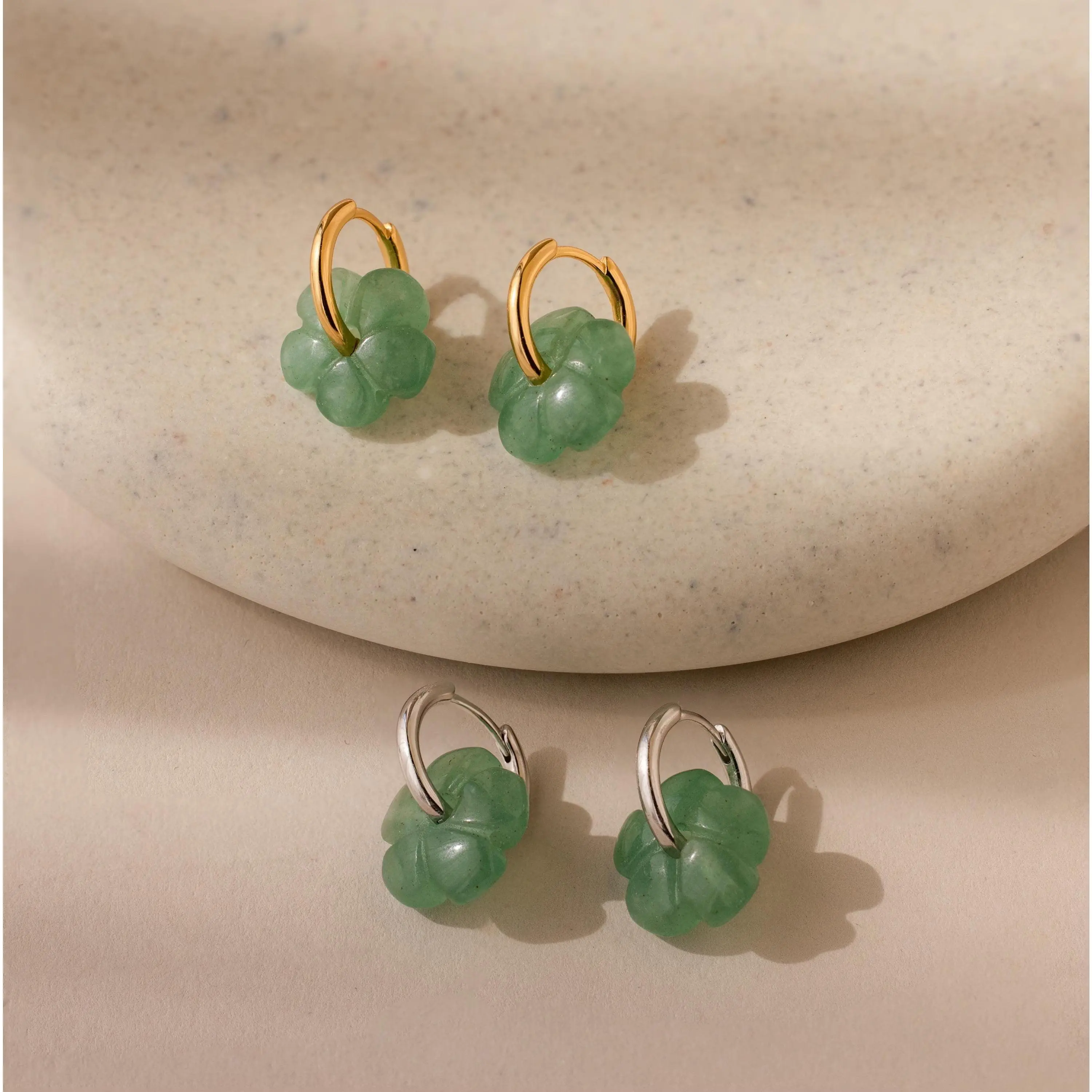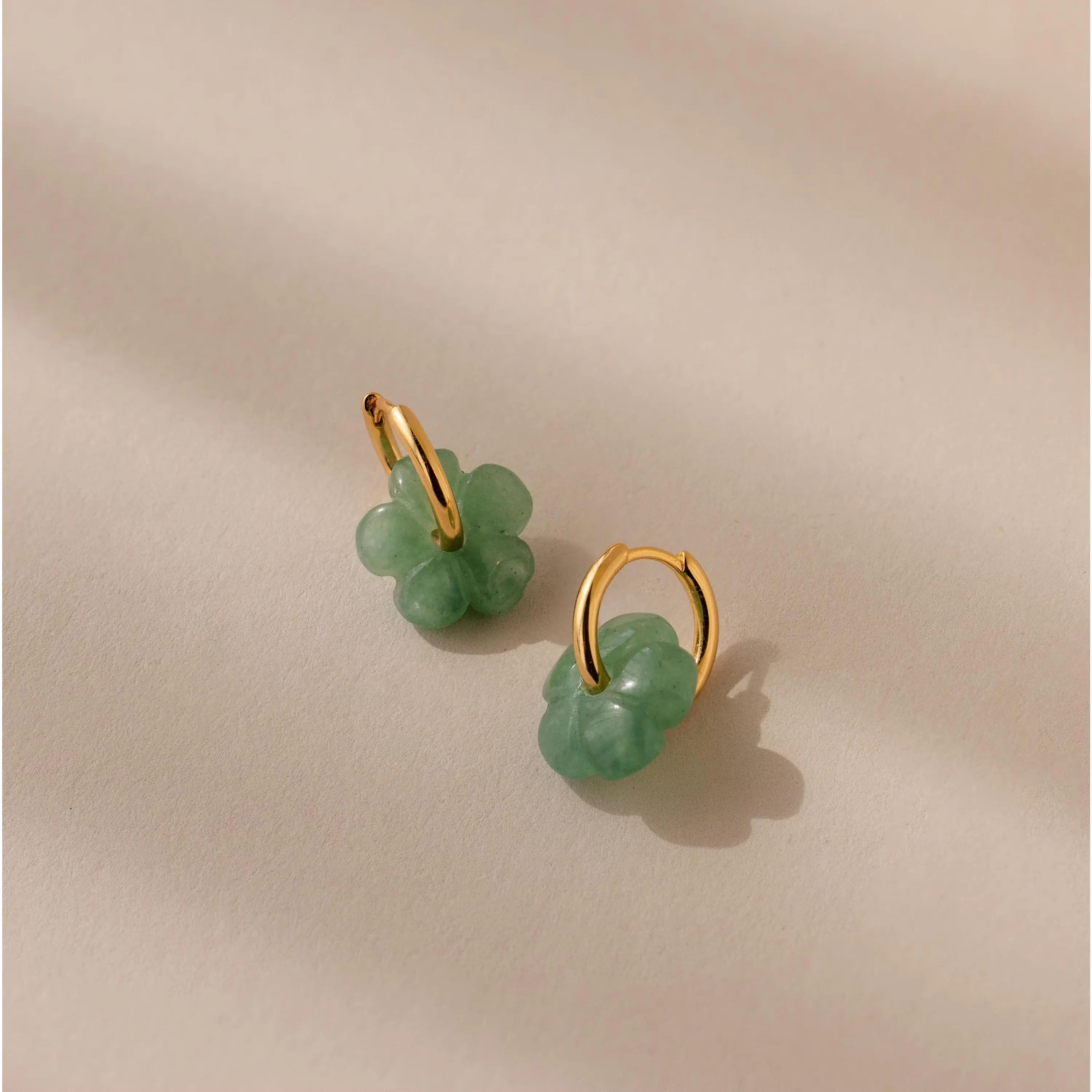 Our Jade Flower Hoops are little hoops with big charm, featuring a delicate Jade flower that symbolizes luck and timeless beauty. Cute and dainty, they make a sweet everyday piece or a meaningful gift for someone special ♡