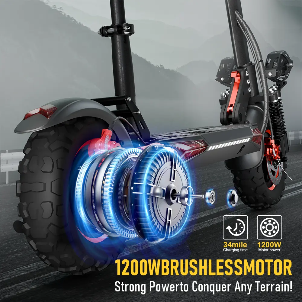·1200W High-Efficiency Brushless Motor: Conquers 20° inclines, perfect for urban commuting and outdoor adventures.