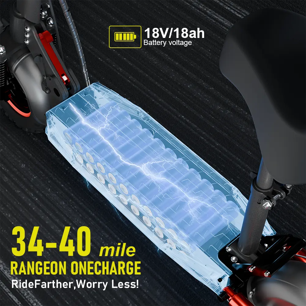 ·34-40 Mile Range: 48V/18Ah lithium-ion battery supports long-distance trips and weekend adventures.