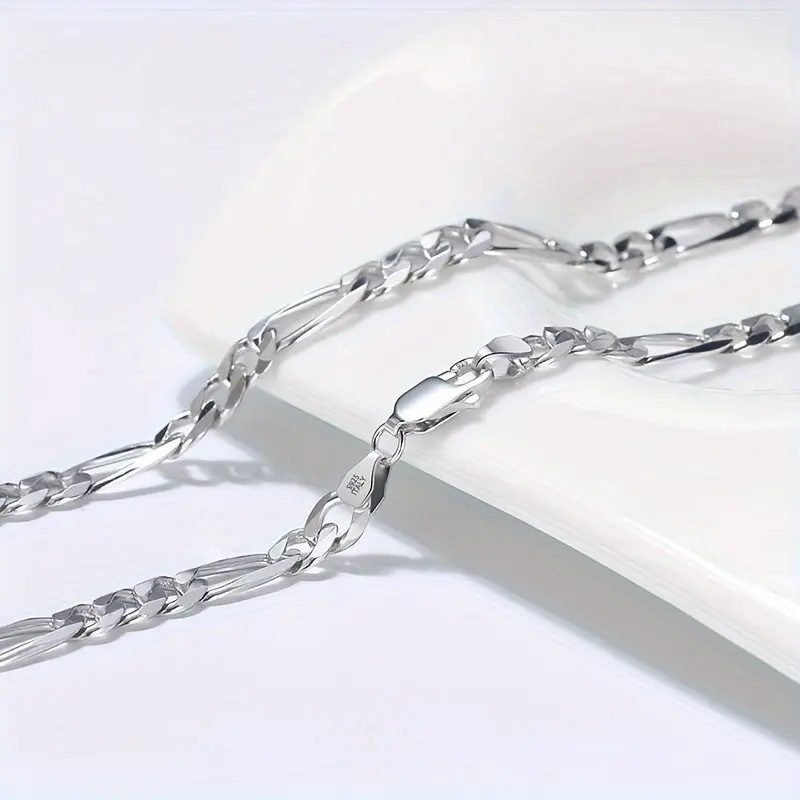 Hypoallergenic 925 Sterling Silver Figaro Necklace - Lead-Free, Nickel-Free, Mirror Polish - Italian Craft, Simple, Perfect for Valentine's Day, Graduation, and Anniversary Gifts