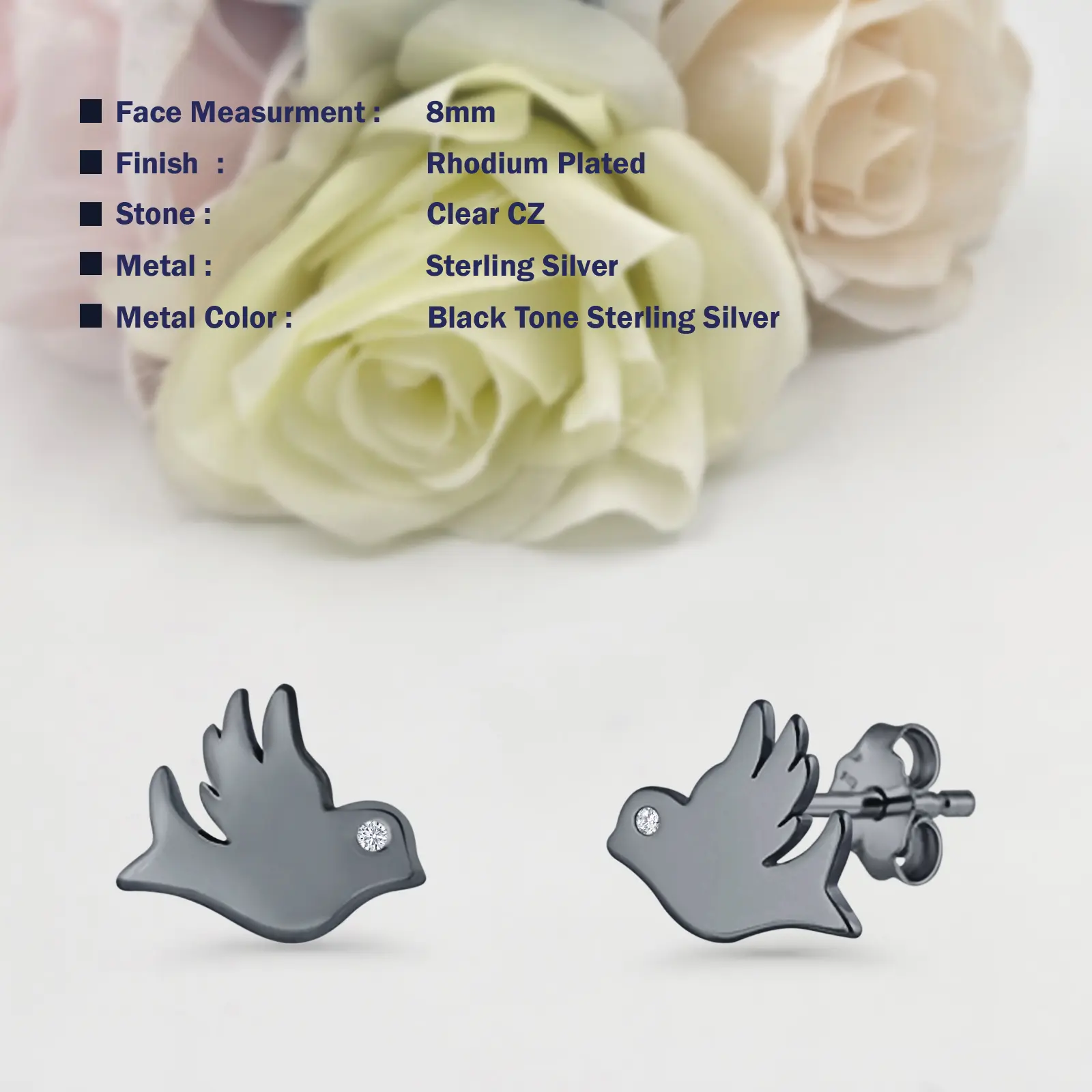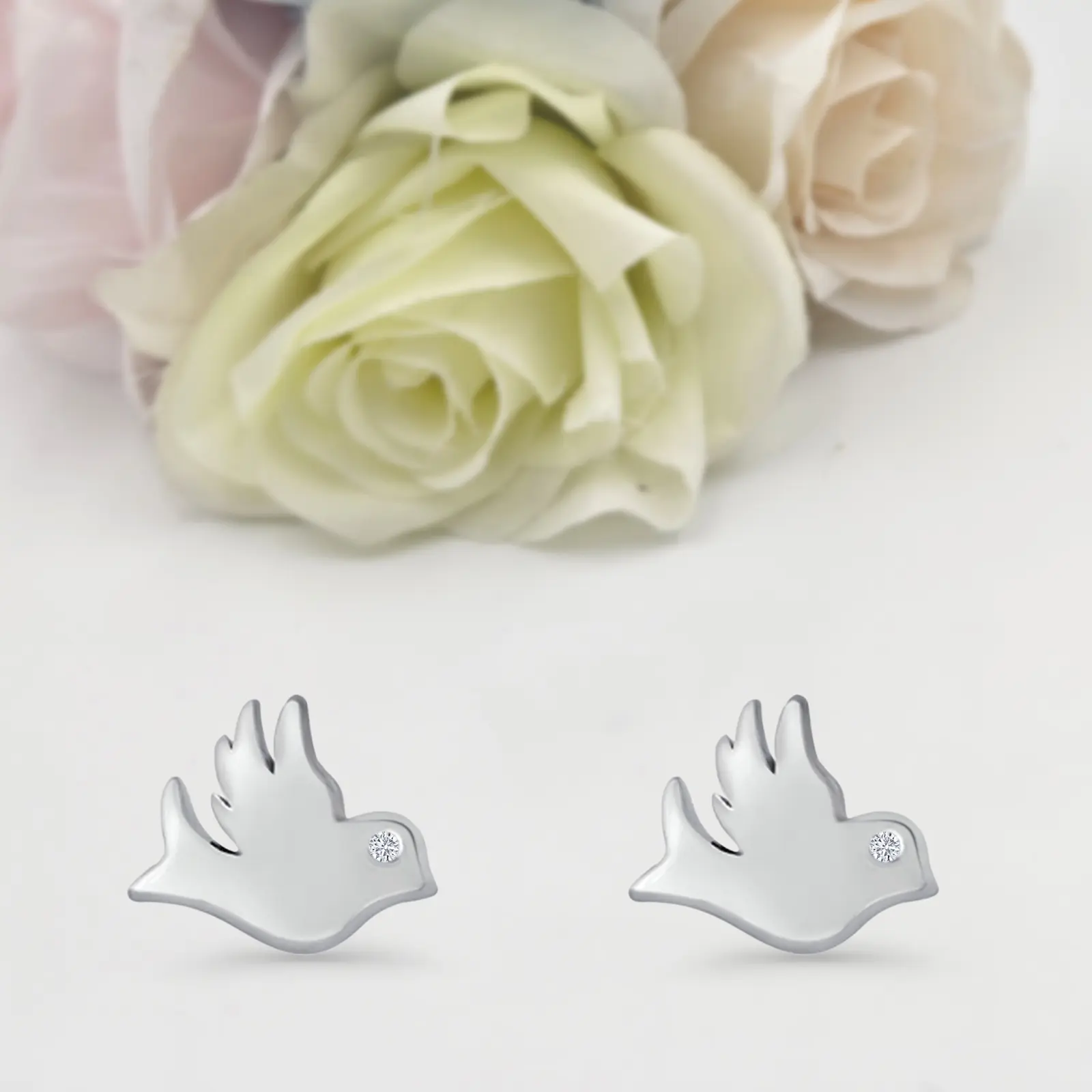 8mm Dove Stud Earring Push Back CZ 925 Sterling Silver Women Round Earring