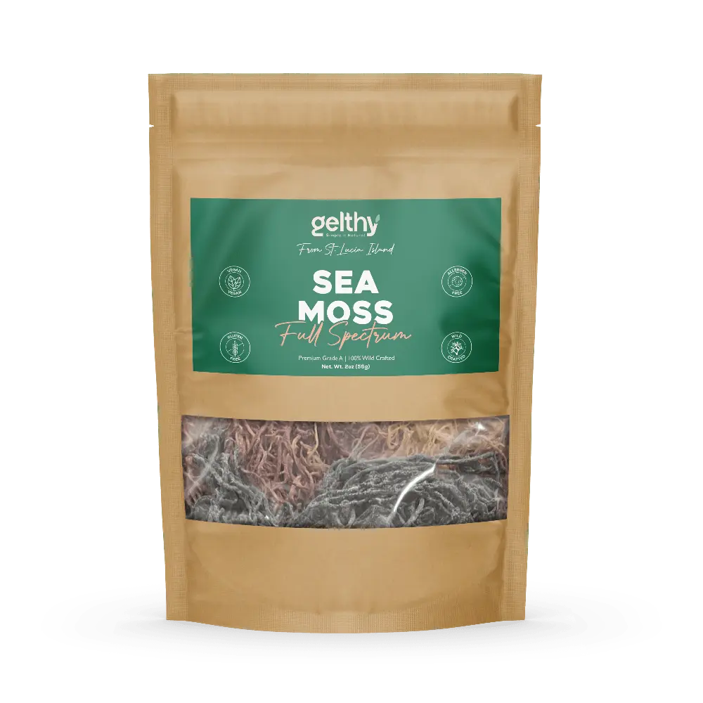 Straight from the crystal-clear waters of St. Lucia, Gelthy’s Sea Moss Dried (2oz) brings nature’s finest directly to your kitchen. Available in Gold, Purple, Green, and Full Spectrum, each variety is carefully selected and dried at low temperatures to maintain its essential nutrients.