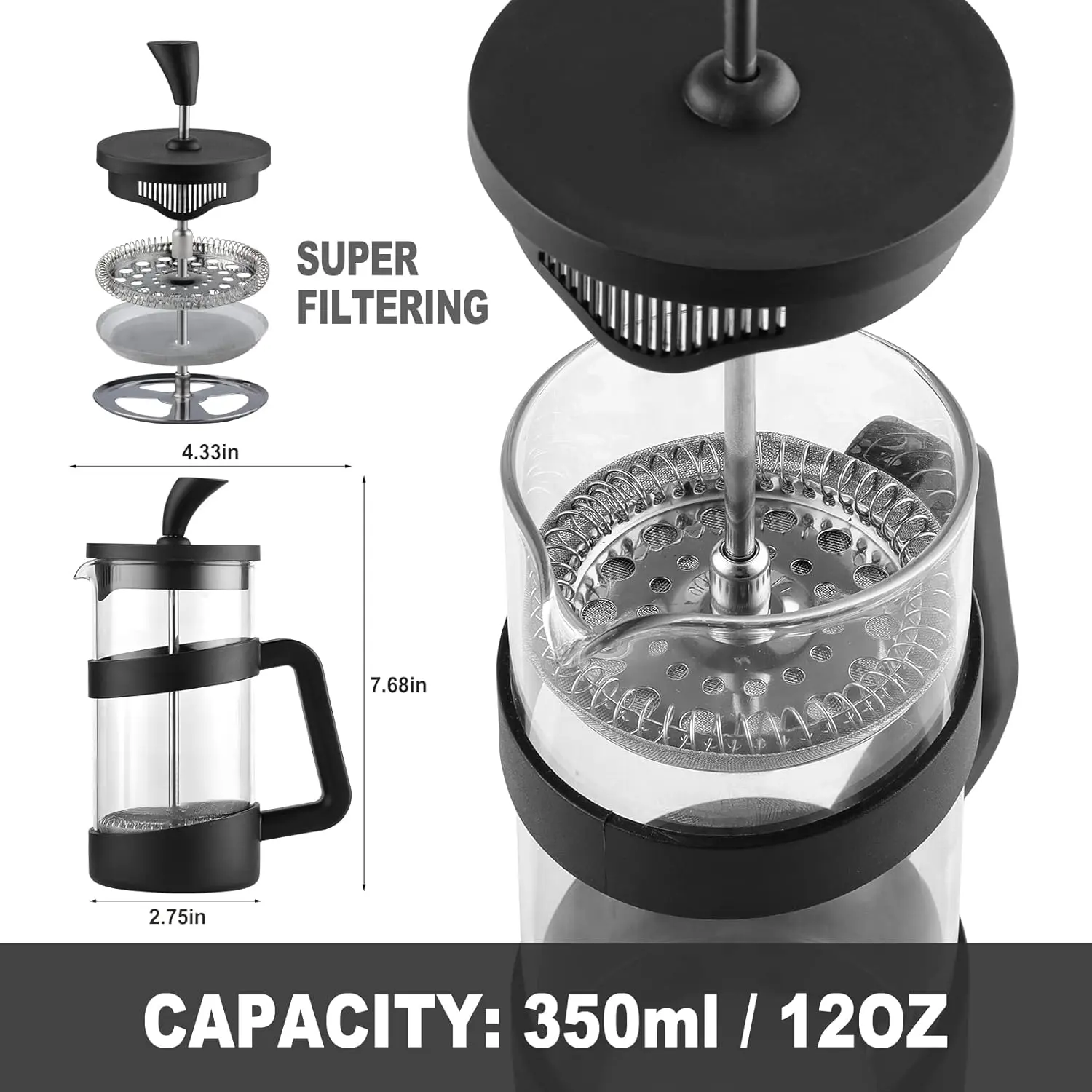 Small Press 12oz Light-weight Durable High Borosilicate Carafe/ Maker Single Serve Coffee Press Frothed Brewer