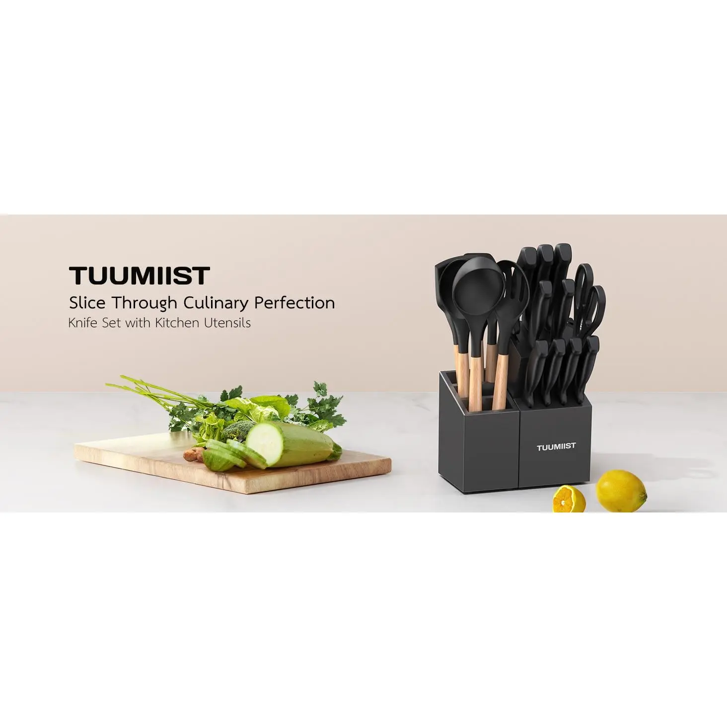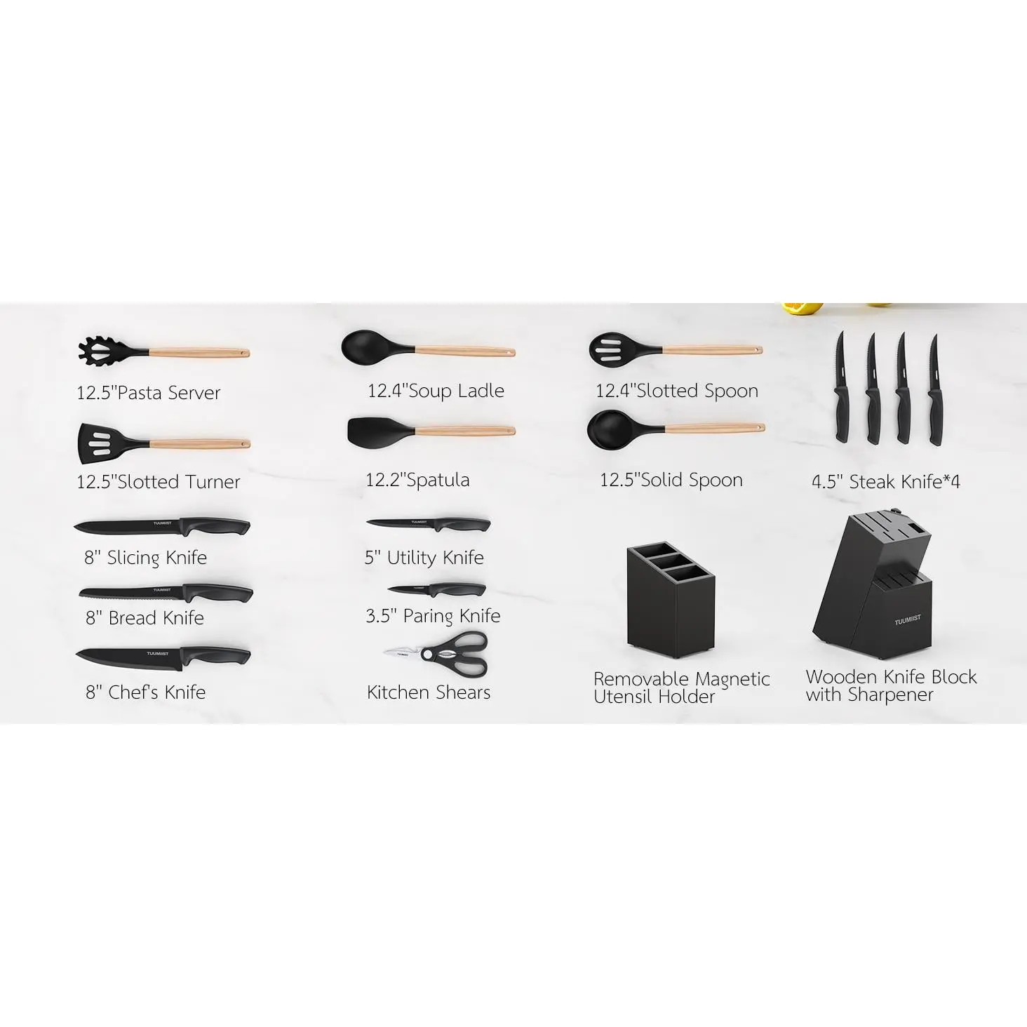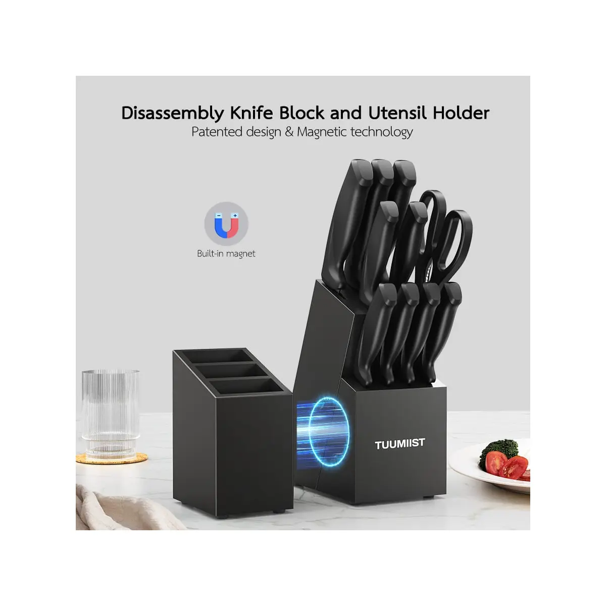 Tuumiist Knife Set, TUUMIIST 18PCS Kitchen Knife Sets With Block And Sharpener, Kitchen Utensils Set, Removable Utensil Holder -Precision Cutting, Effortless Sharpening, Convenient Organization