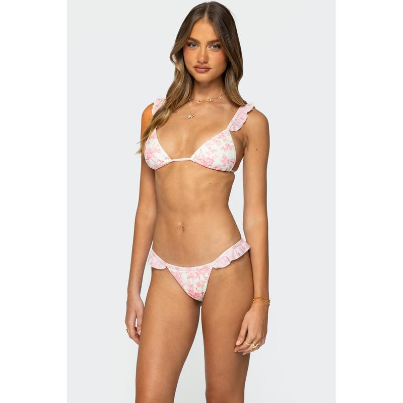 Floral Ruffle Triangle Bikini Top