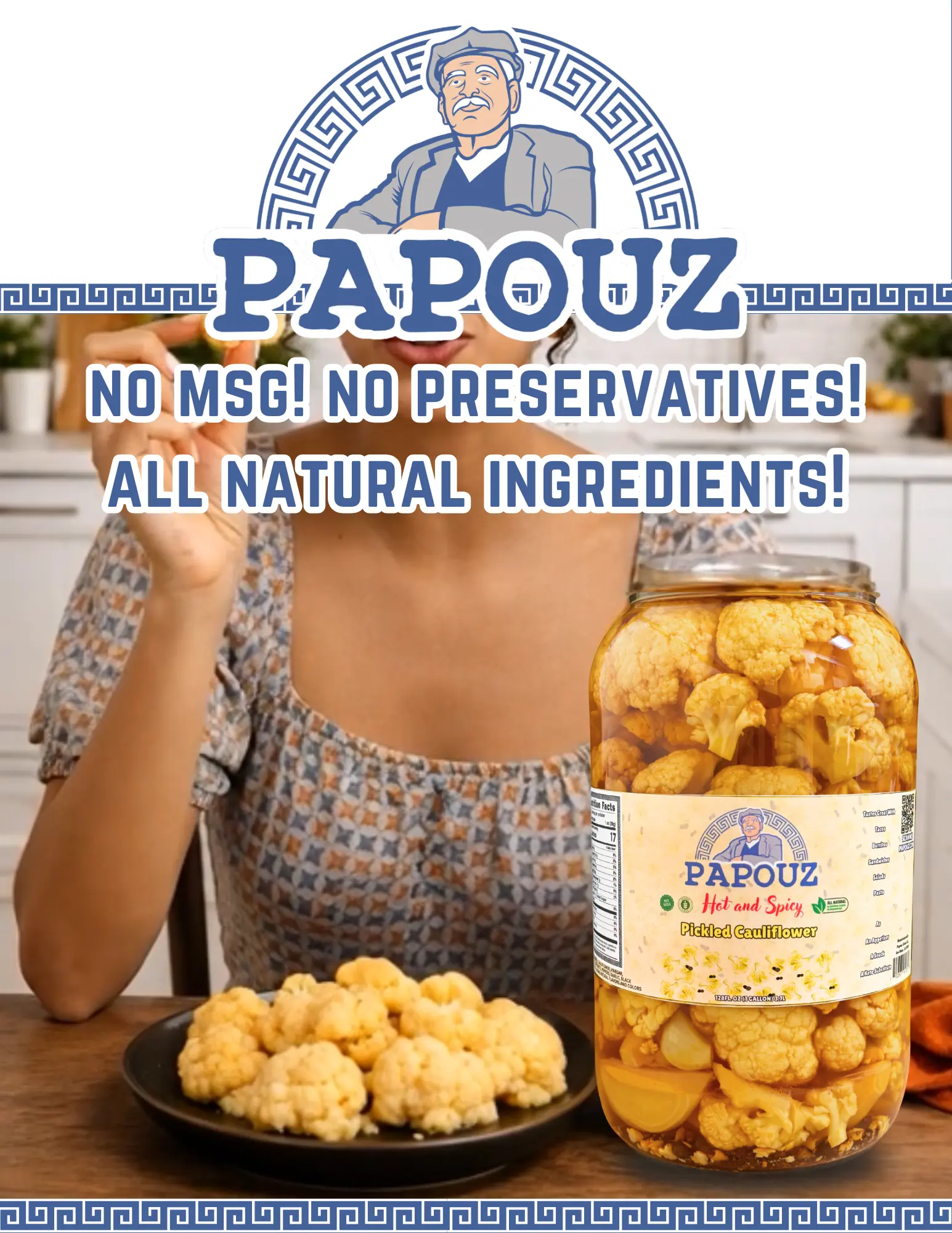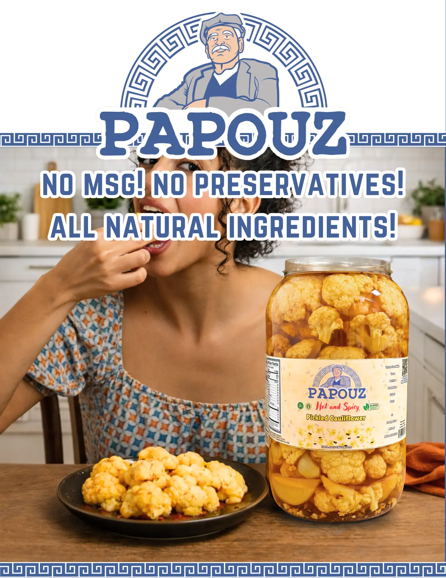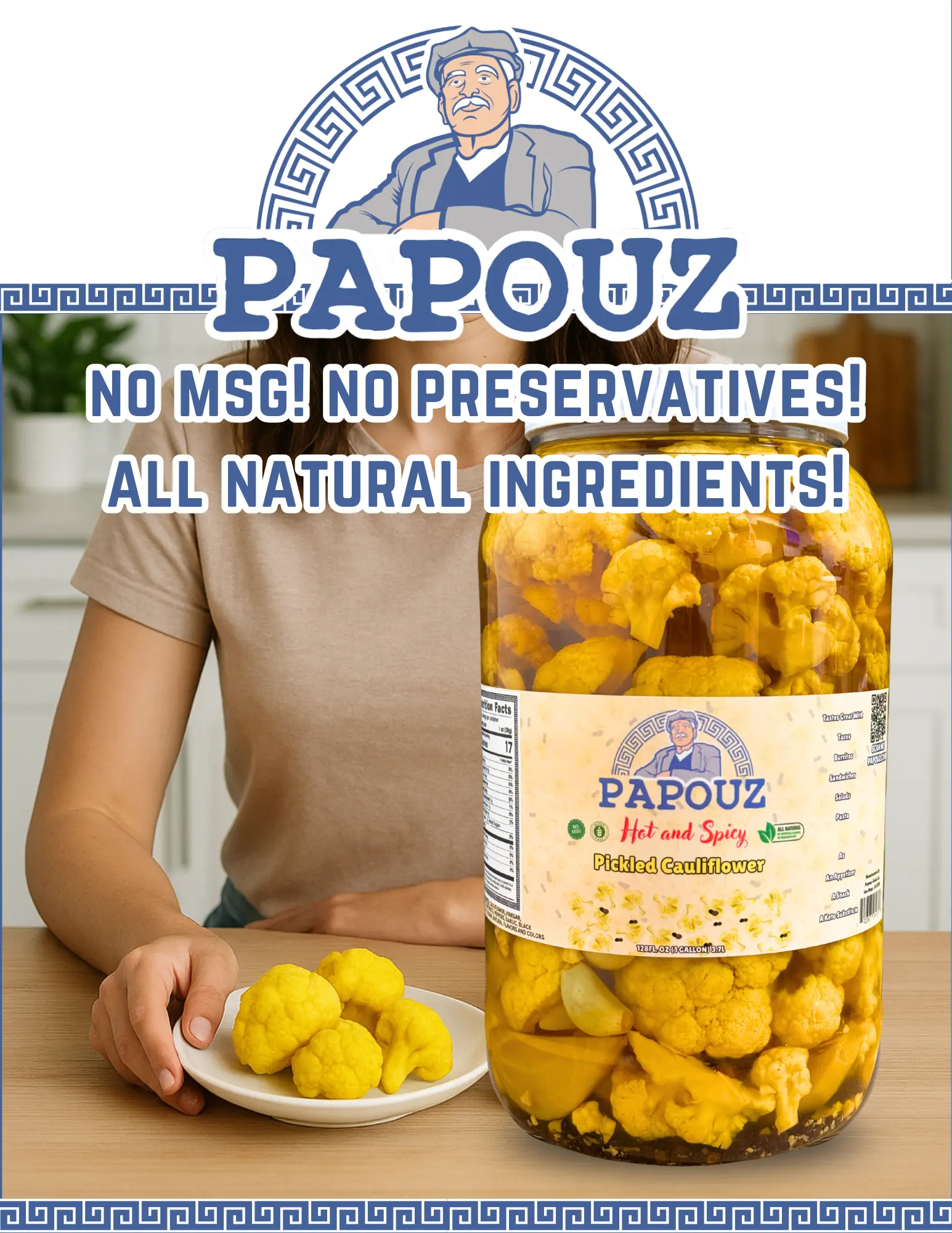 Papouz Spicy Pickled Cauliflower brings that classic pickled vegetable tradition into a large jar designed for home kitchens and entertaining.