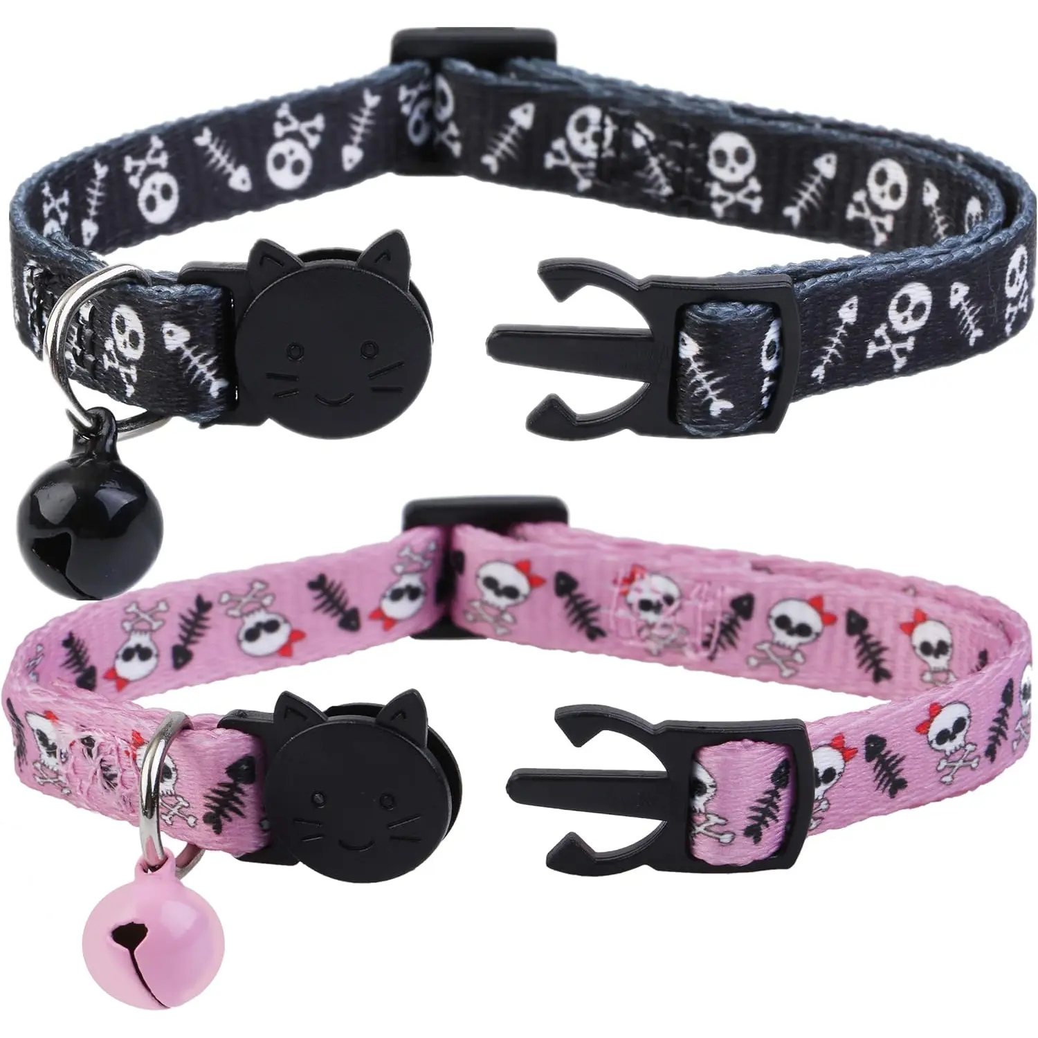 Boombone Skull Cat Collar Breakaway with Bell,Pack of 2 Safe Halloween Puppy Collars Upaw