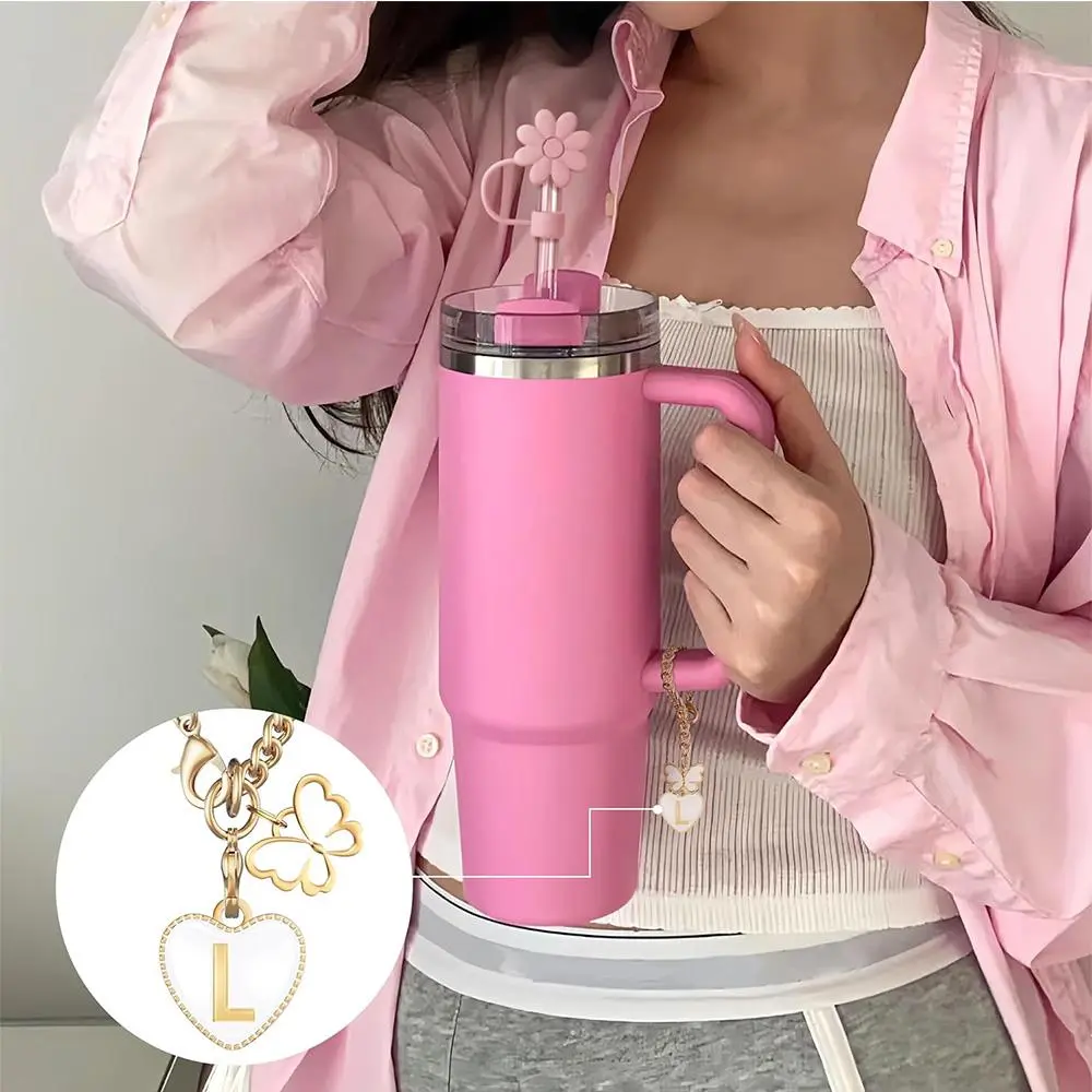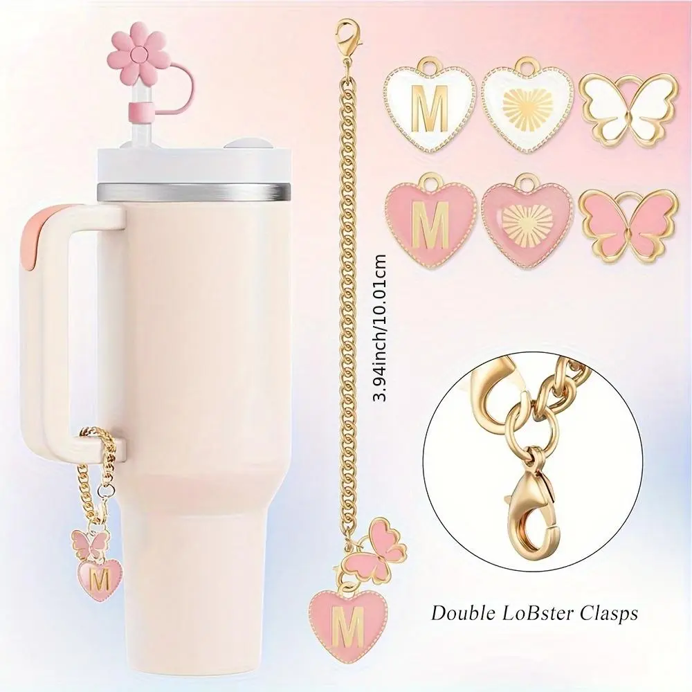 【Unique Accessories Set】: This set includes 5 pieces, combining silicone straw covers and letter charms to enhance drinkware aesthetics.