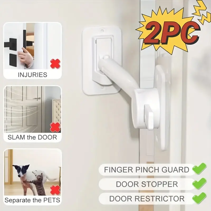 2pcs Pet Safety Door Latch - Adjustable Anti-Theft Finger Clip Guard for Dogs & Cats, Easy Entry Access, Door Stopper, Door Lever Handle, Lock