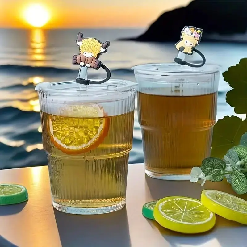 Cute Highland Cow Design Straw Cap, 6pcs Cartoon Straw Cover, Dustproof Straw Topper, Straw Protector for 30oz 40oz Tumbler Cup, Drinking Gadgets, Drink Protectors
