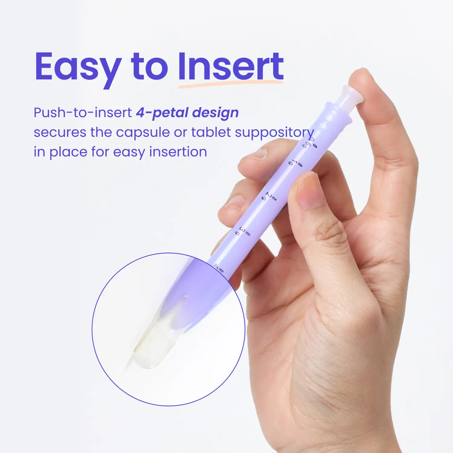 ·Easy to Insert - The push-to-insert 4-petal design secures the capsule or tablet suppository in place, making the application process smooth and effortless.