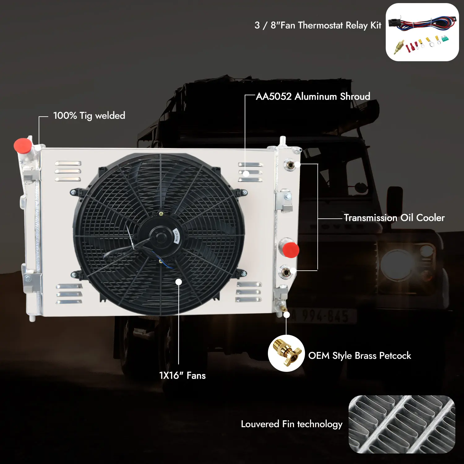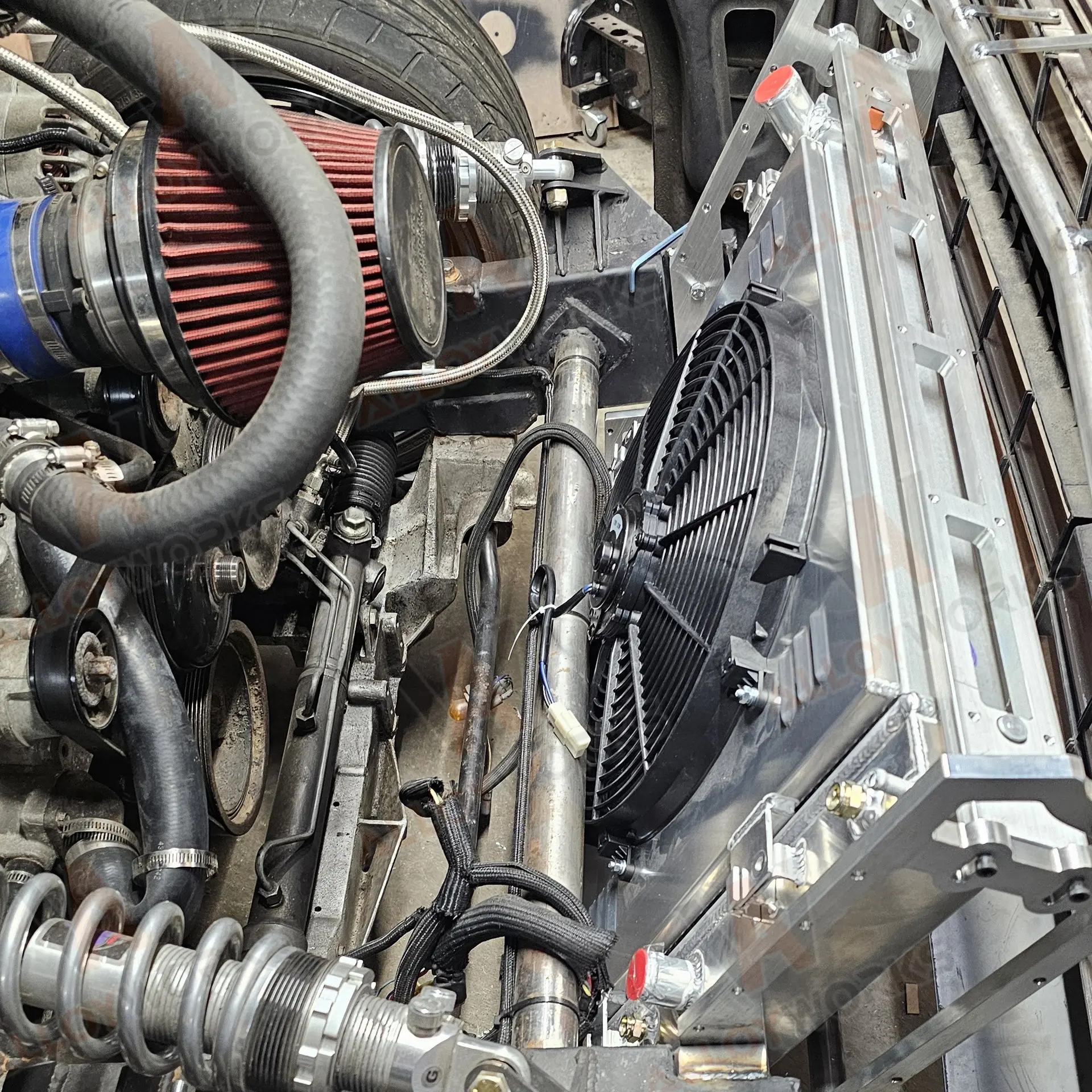 The vehicle radiator features a core welded in a vacuum brazing furnace without epoxy and is 100% TIG-welded. Made from high-quality AA5052 aircraft-grade aluminum, this aluminum radiator offers greater strength and coolant capacity compared to OEM units.