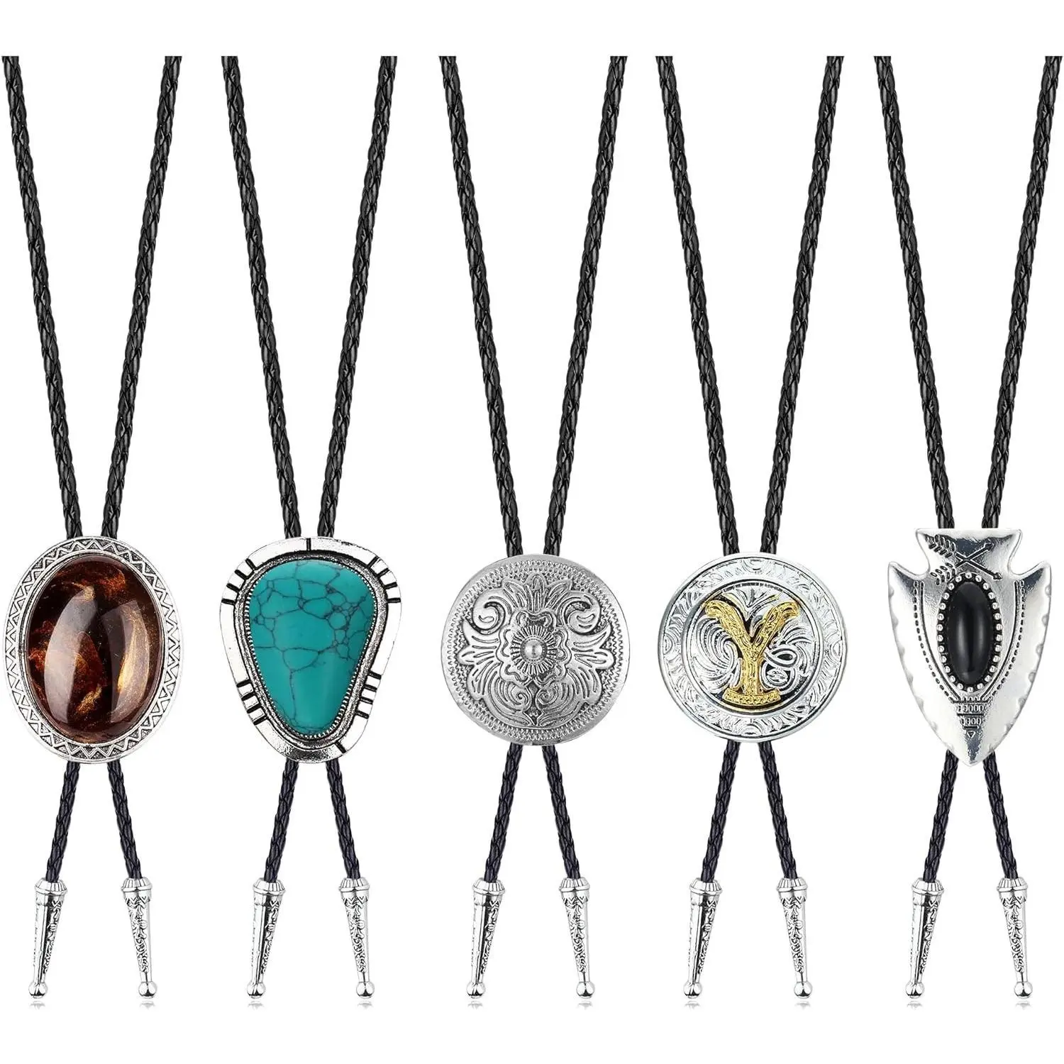 Jstyle 5Pcs Handmade Bolo Tie for Men Western Cowboy Leather Necktie Halloween Costume Accessories for Men Women Daily