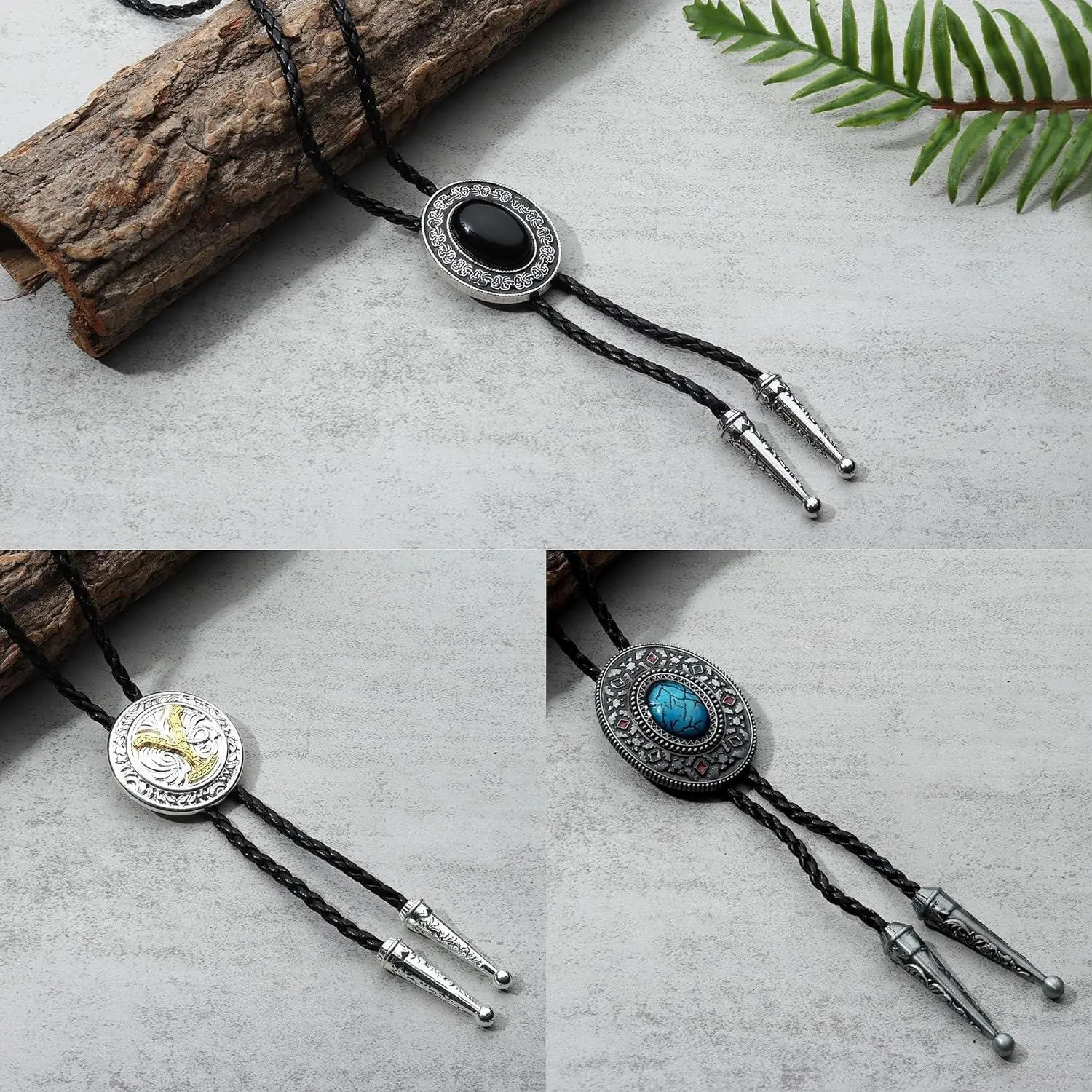 【High Quality Material】- Our cowboy necklace are made with hand-braided leather and high-quality alloys. The bolo tie's end each rope has one metal tip which keep the rope from fraying and enhance the fashion of the tie. The exquisite stones that are polished and electroplated for a beautiful and fashionable look.