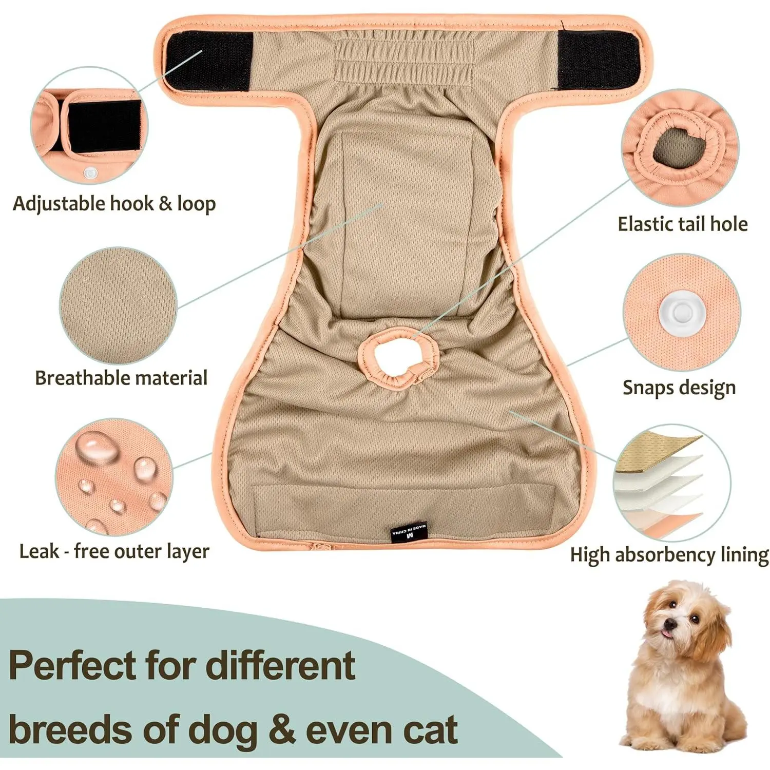 Multi-purpose and : This female diaper for peeing can be for female dogs in heat, untrained puppy , dogs with , female dogs with birth control, , and urinating excitement. It helps keep your dry and comfortable. We designed the lining color to be khaki. The period diapers for females do not you from checking your 's urination promptly, and it also protect the 's pants from being stained by stains and