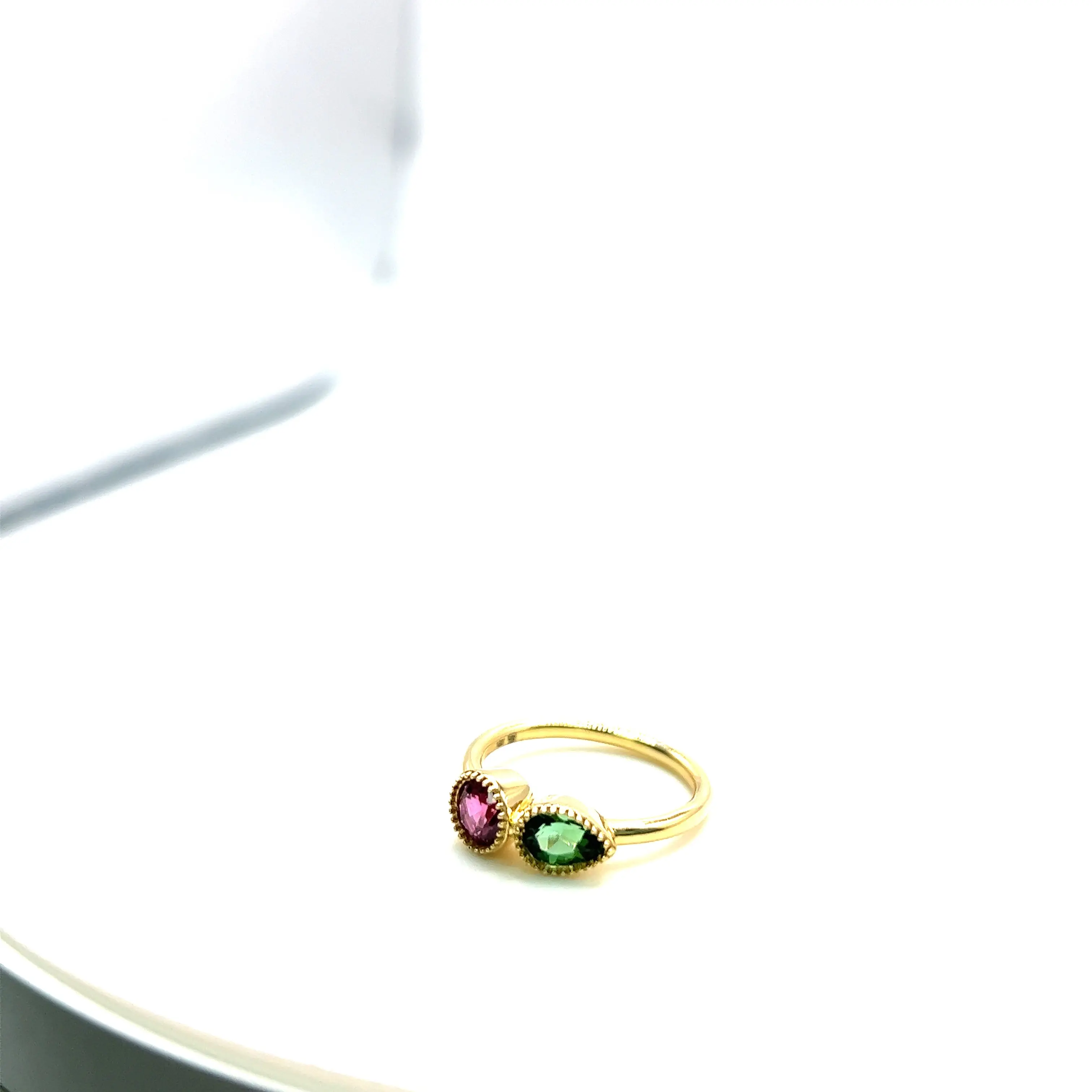 Pink Ruby & Green Tourmaline Stone Ring
