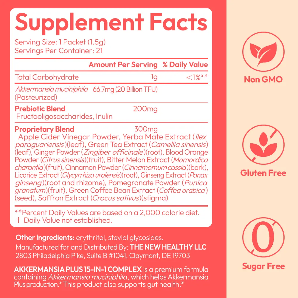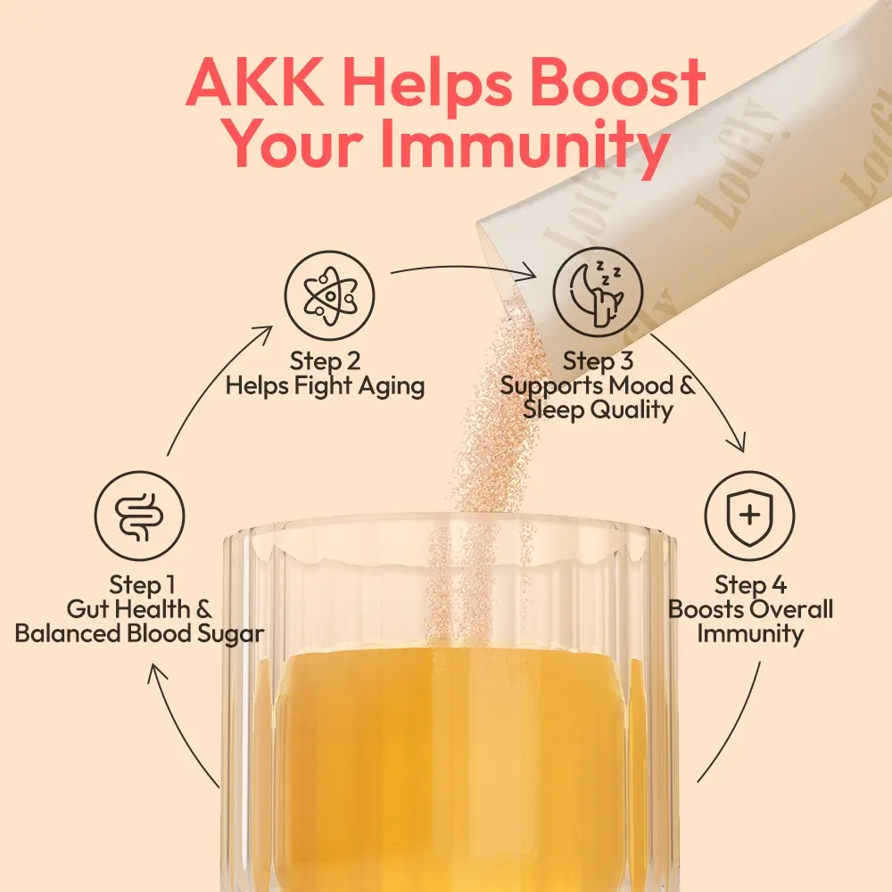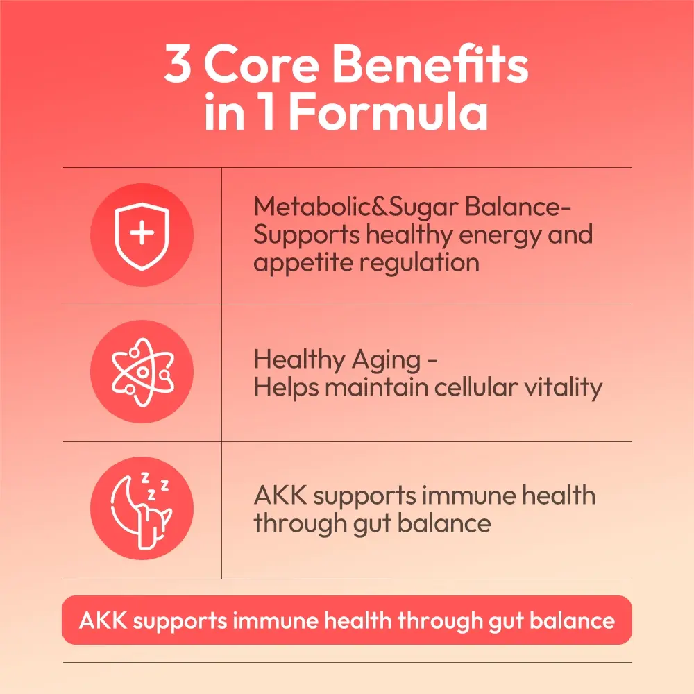 ·Gut Microbiome Harmony: Akkermansia and prebiotics work together to nurture a balanced and diverse gut environment.
