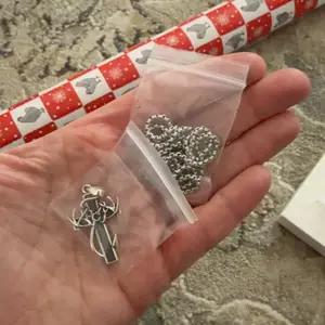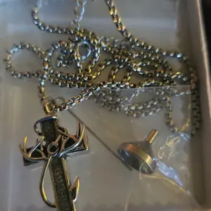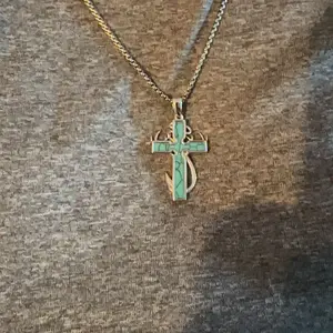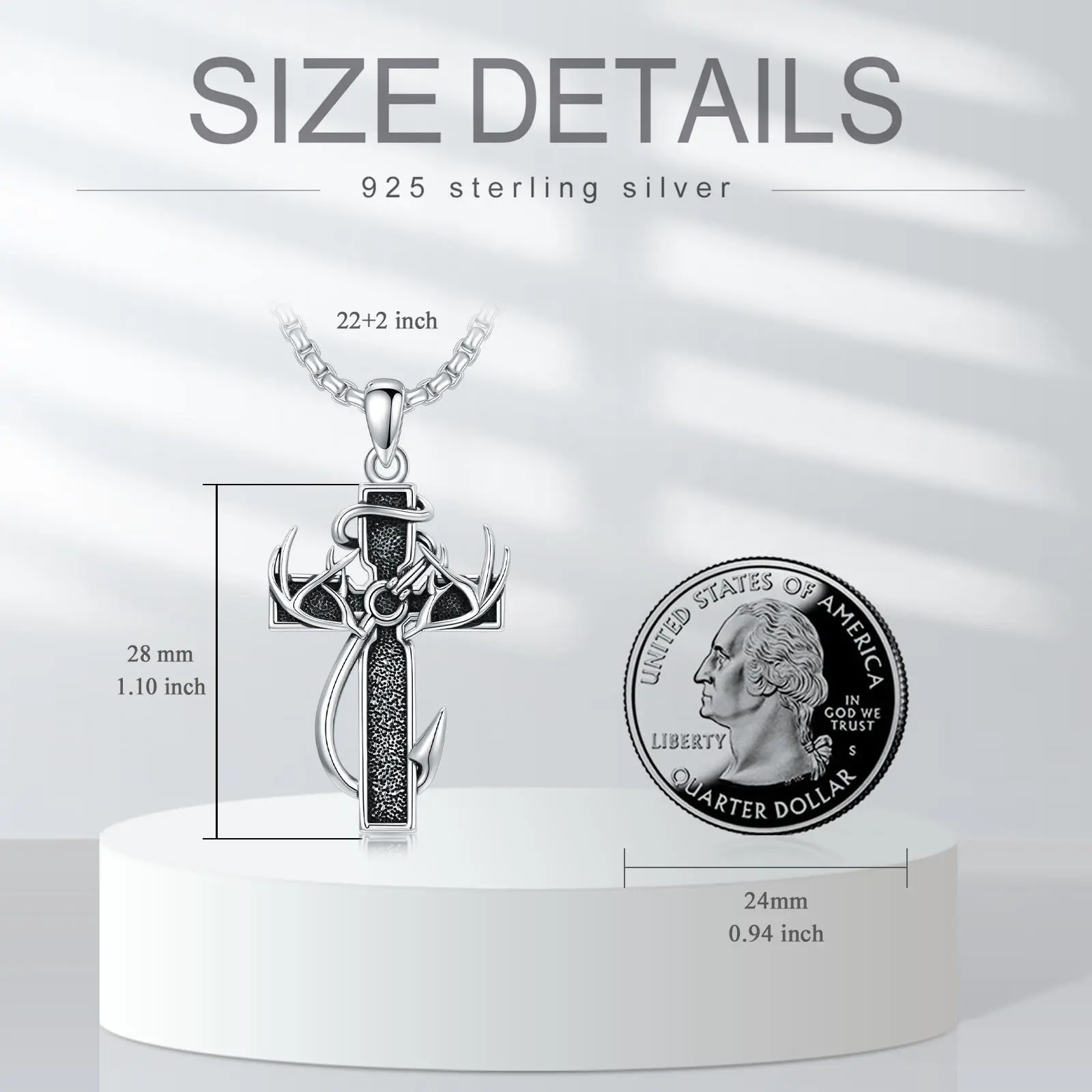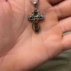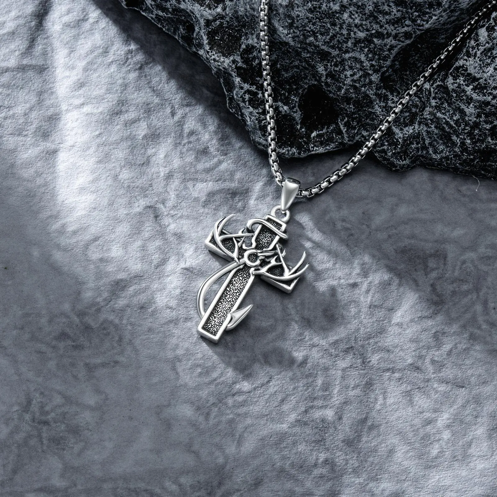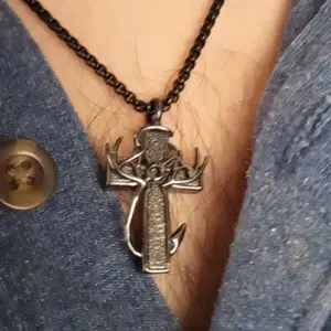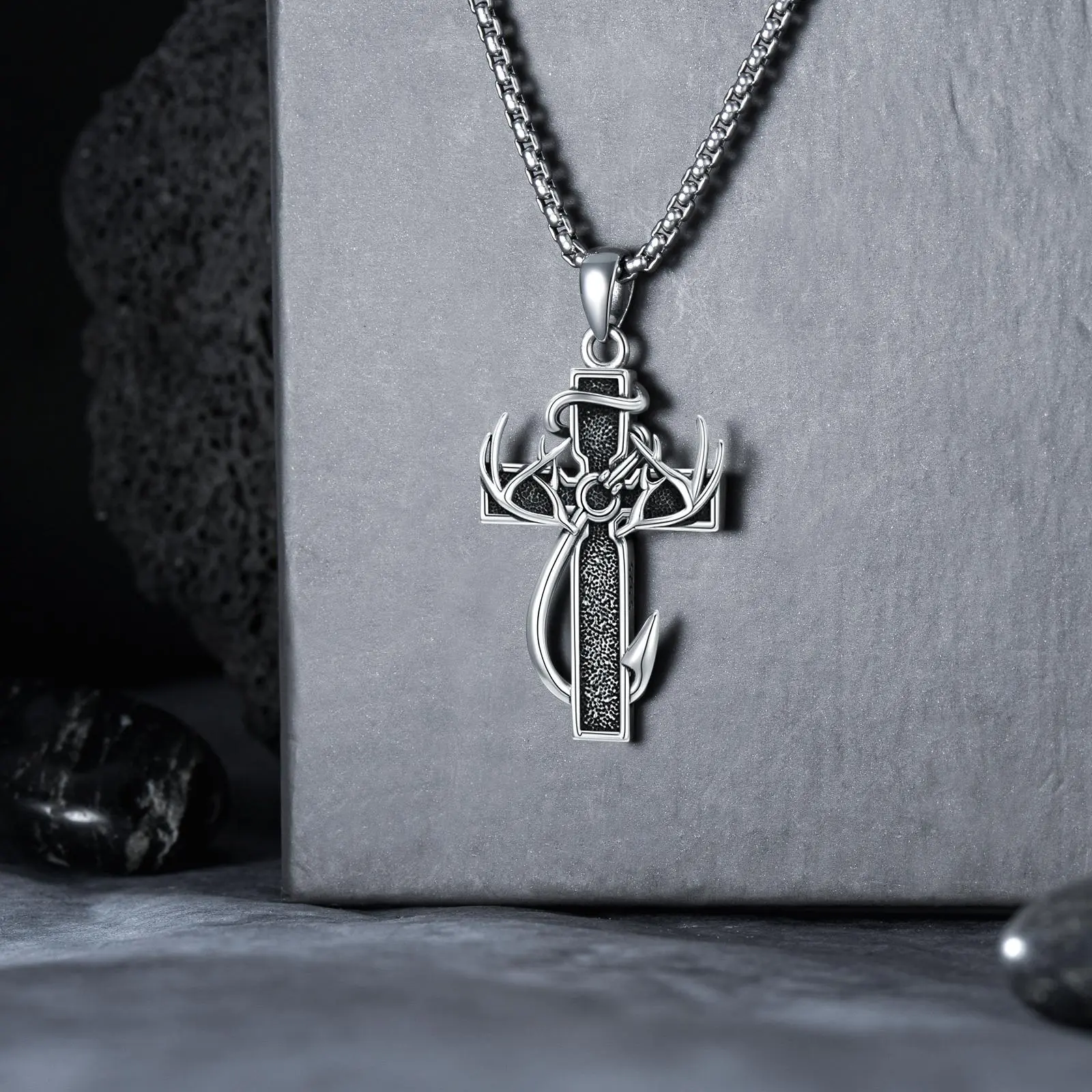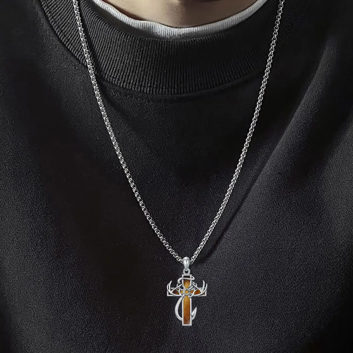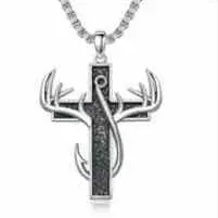 This necklace features a cross, fish hook, and antlers, creating a refined look. Perfect for daily wear, it's an ideal gift for family members. The design combines sophistication with practicality, making it suitable for various occasions. Enhance your outfit with this stylish piece.