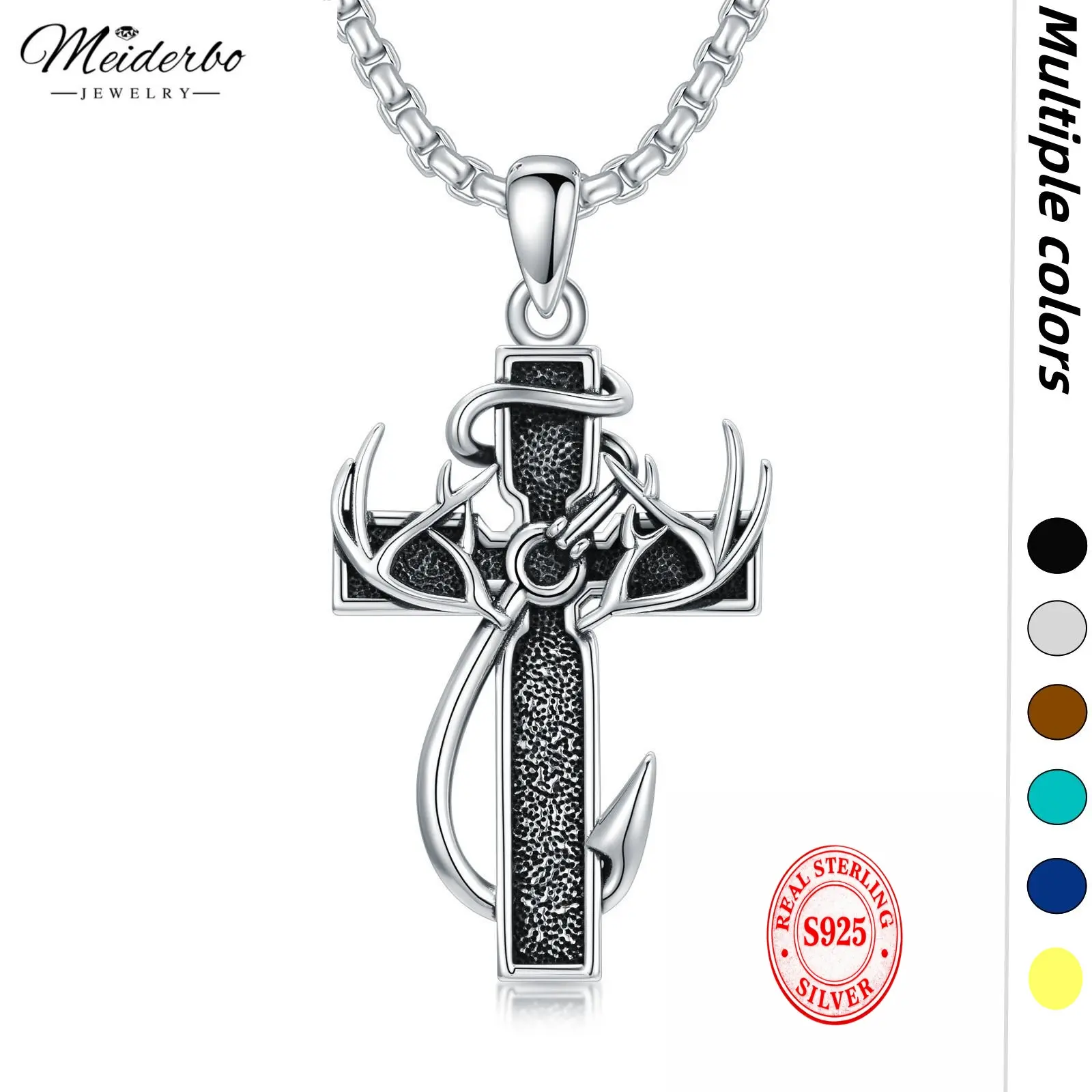 MEIDERBO 925 Sterling Silver Cross Antler Necklace