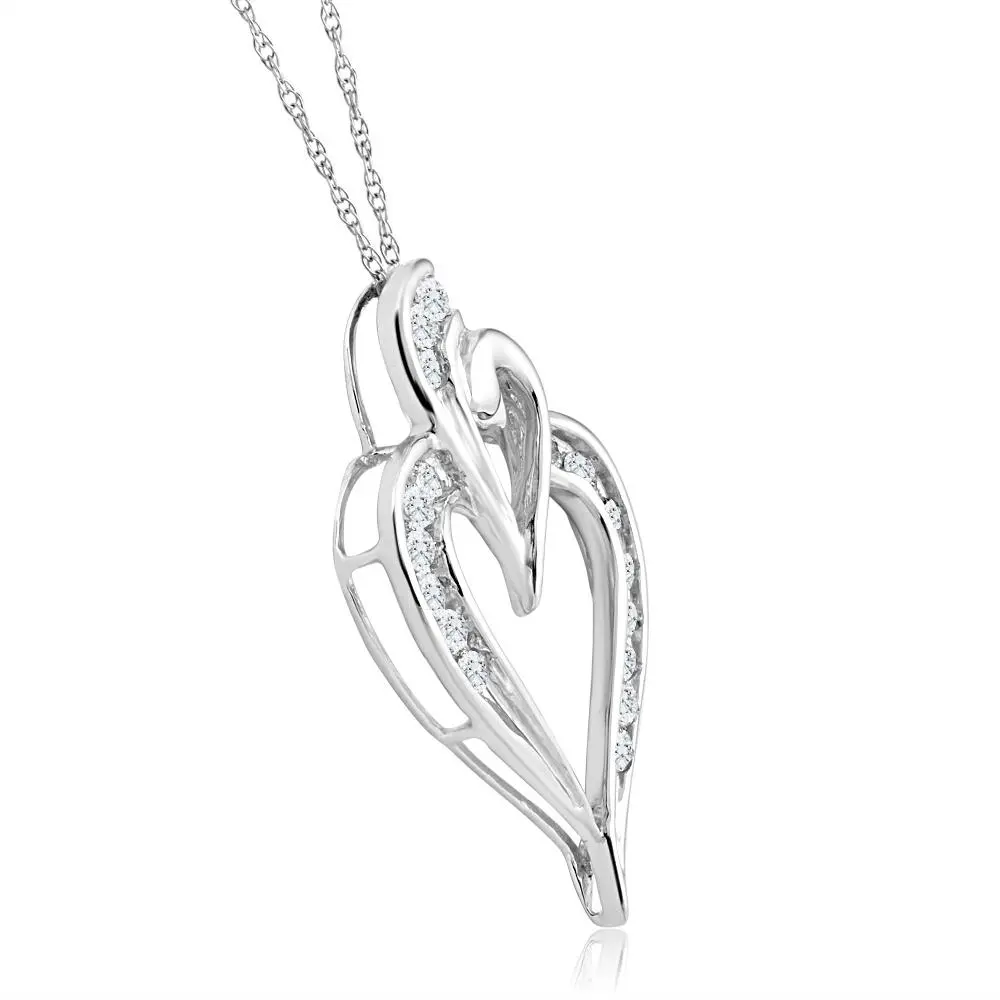 This classic heart shaped pendant features 17 round brilliant cut natural diamonds. All diamonds are prong set in 10k white gold. An 18" 10k white gold clasp lock chain is included. 1/2ct total diamond weight.