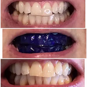 This product does absolutely nothing for whitening. Used it twice with no change. Very difficult to keep on teeth.