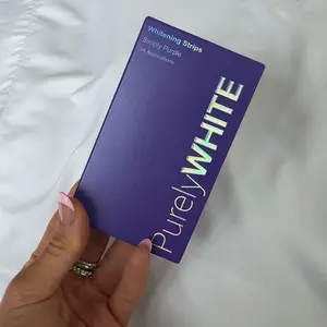 I LOVE these whitening strips. They don’t have peroxide so they don’t hurt when I use them and the purple makes your teeth look like they are glowing. So much better than any other kind I’ve tried!!