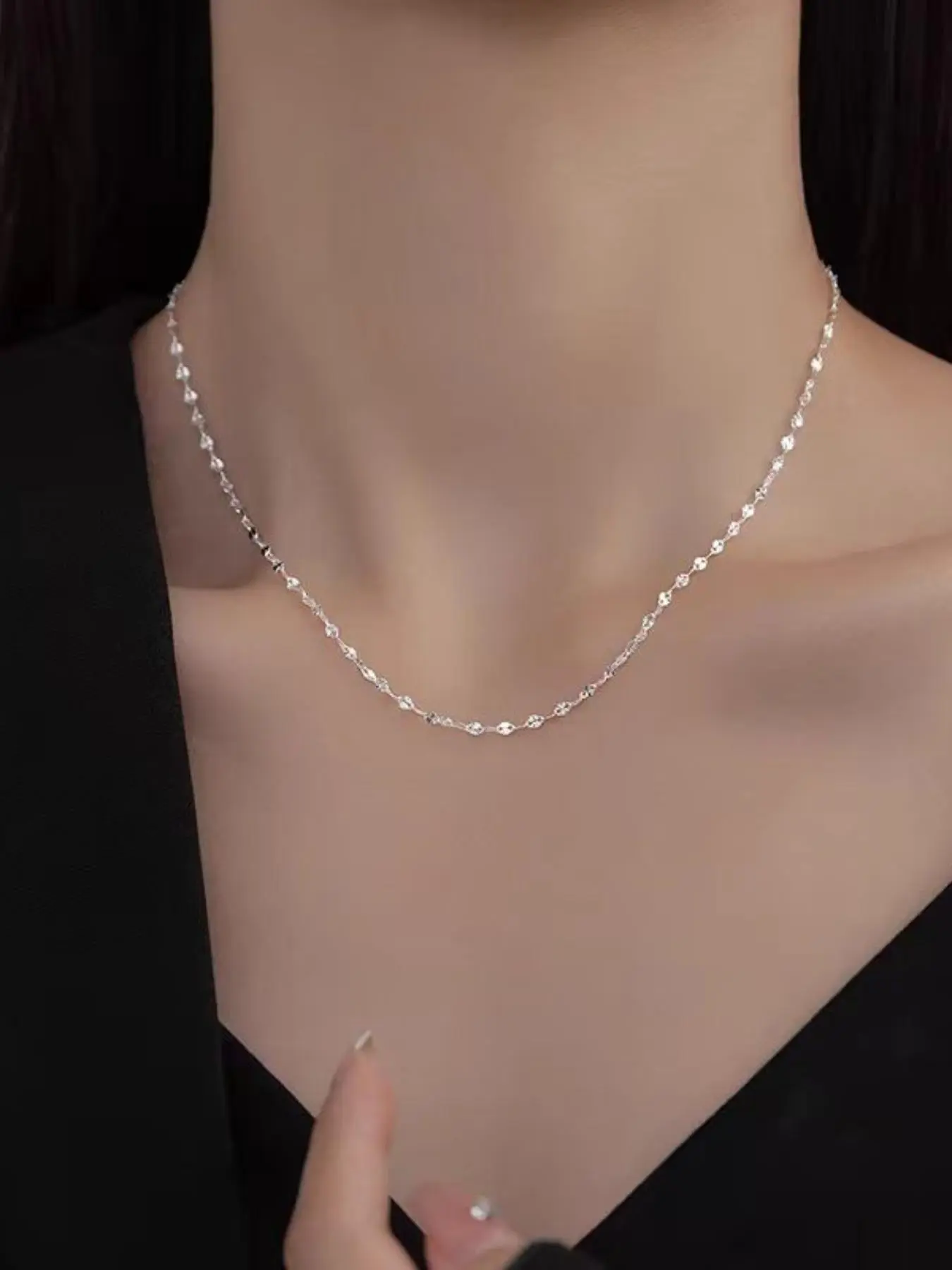 S999 Sterling Silver Minimalist Chain Necklace Exquisite Trendy Pendant for Women & Girls, Fashion Jewelry for Party, Daily Clothing Decor, Trendy All-match & Exquisite Jewelry for Birthday Gift