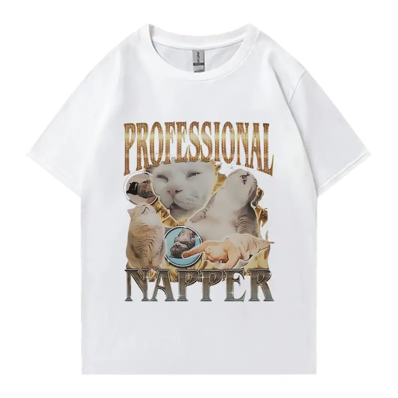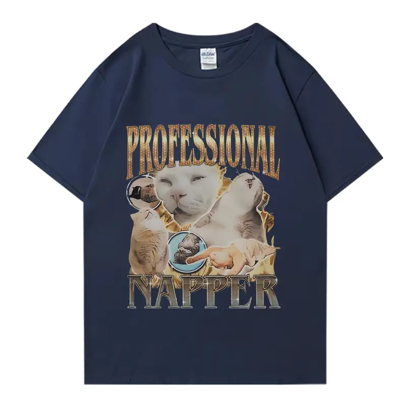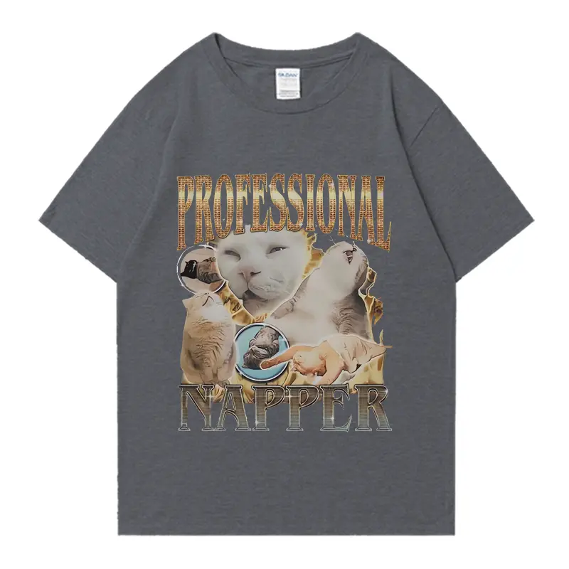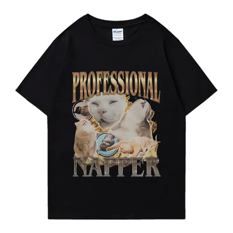 Professional Napper Funny Cat Meme Vintage T-shirt Men Summer Casual Cotton Oversized T shirt High Quality T Shirts Streetwear Top Black