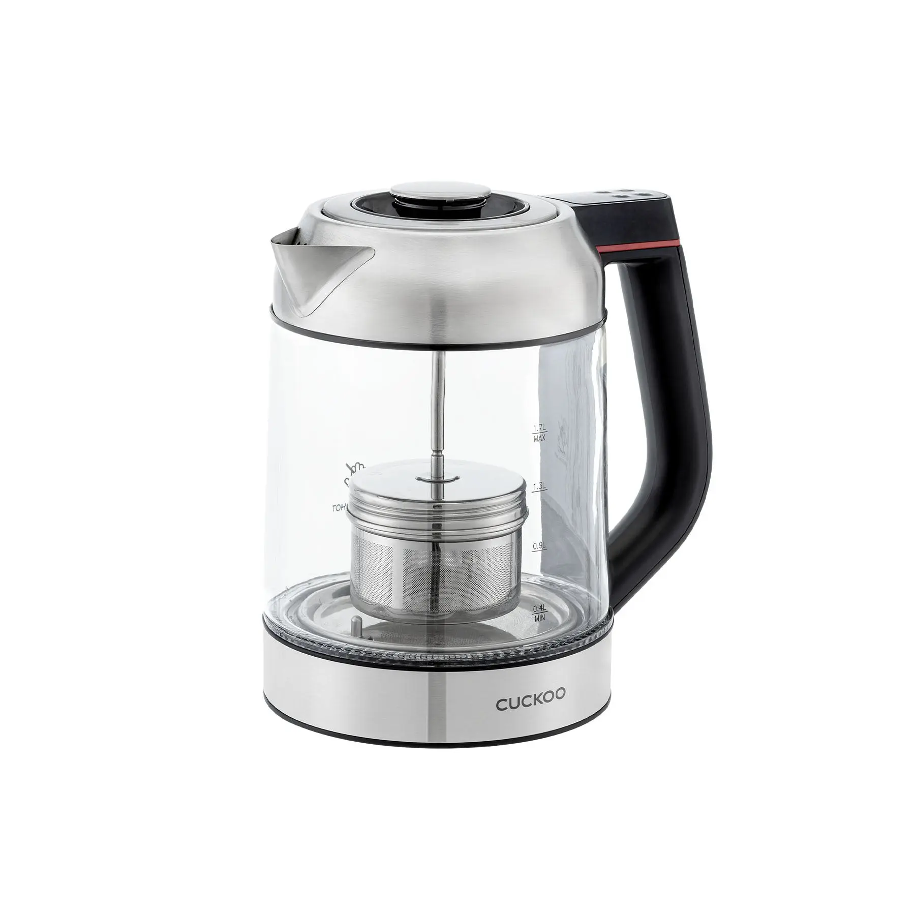 CUCKOO Electric Glass Kettle | Boil Water Fast, Stylish, Heat-Resistant Glass, Steel, with Tea Infuser Included (CK-G170BS)