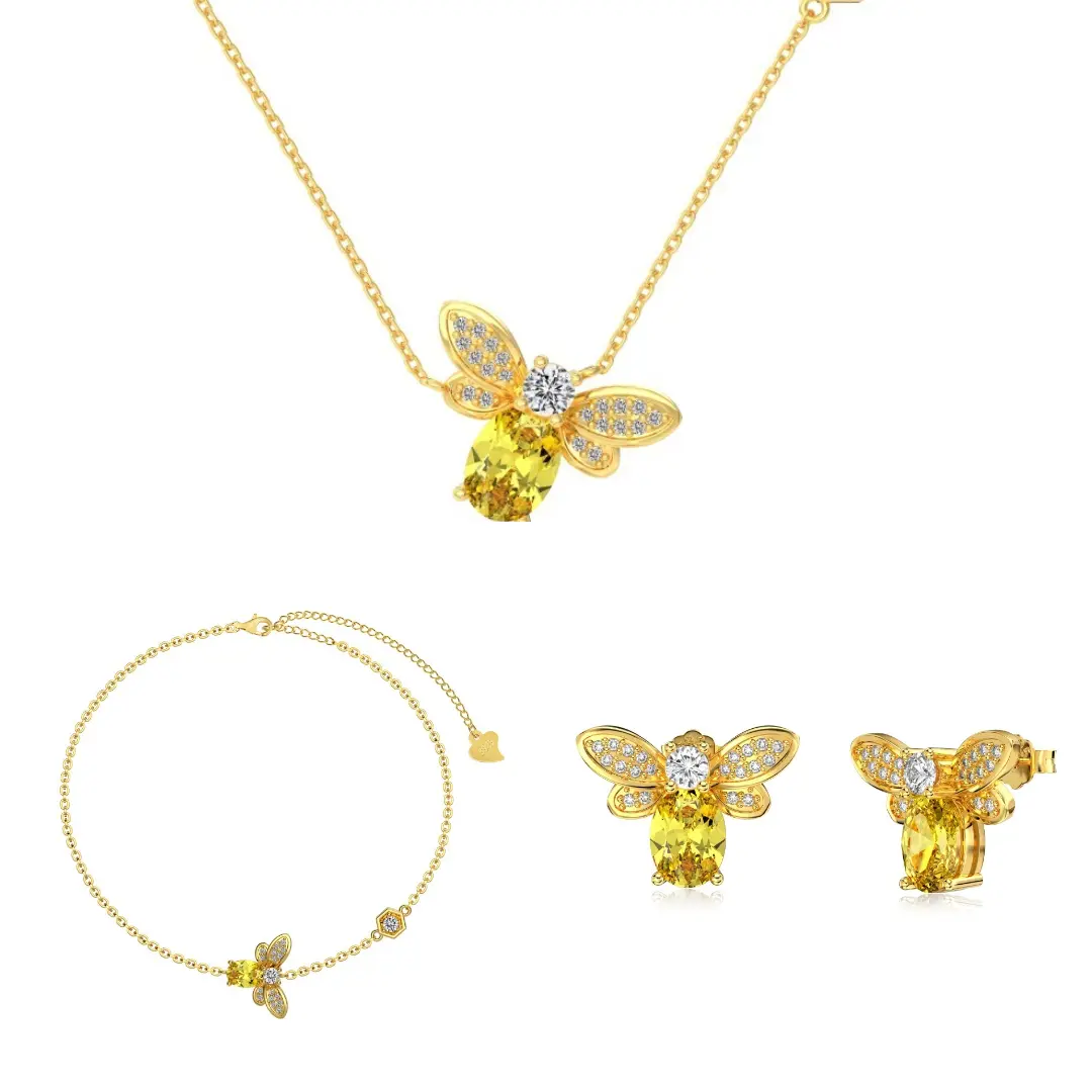 This charming bee-themed jewelry set includes a delicate necklace, adjustable bracelet, and stud earrings, combining vintage elegance with modern minimalism. Crafted from S925 sterling silver and adorned with 5A cubic zirconia, each piece sparkles brilliantly and is perfect for daily wear, gifting, or special occasions.
