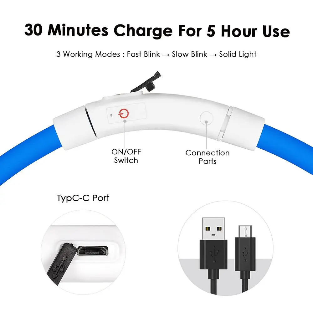 ·Equipped with bright LED lights, this collar significantly enhances your pet's visibility in low-light conditions, ensuring safety during evening strolls.
