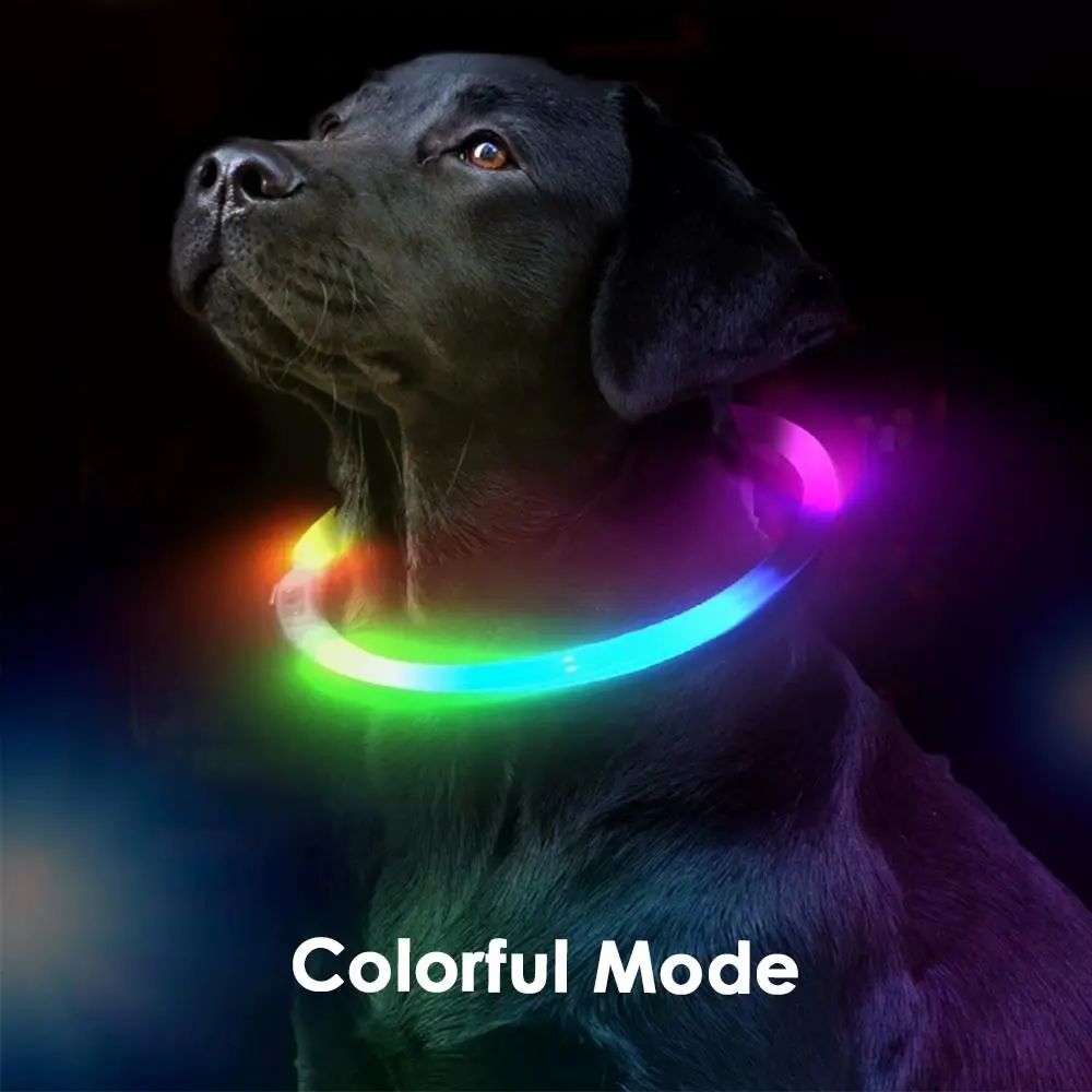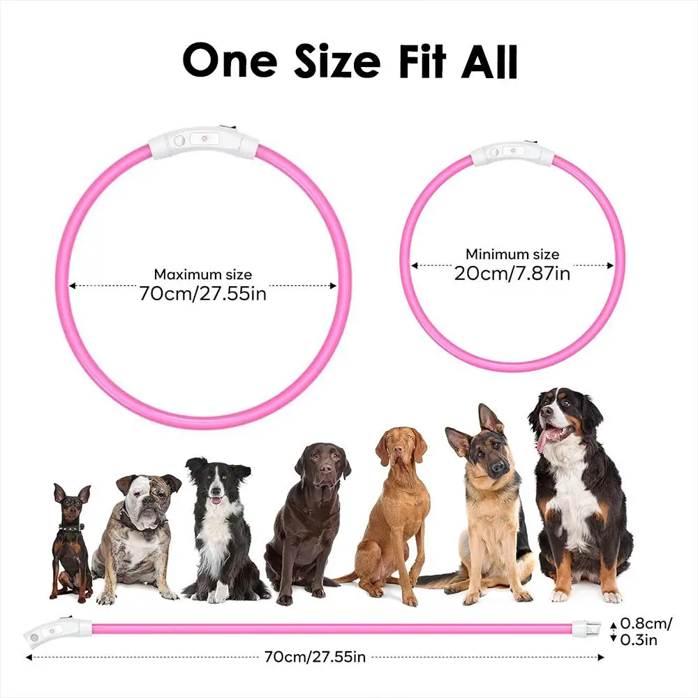 LED Flexible Dog Collars Adjustable Light Up Dog Collars Safe USB Rechargeable Flash Lights for Night Walking, Universal dog accessories for Safe Walk