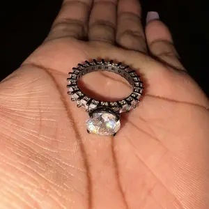 It’s so elegant and a different style for me. The 100 cut moissanite sets it off. This is definitely one to get. If you want different and classy this is it. You can wear it alone or with stacking bands.