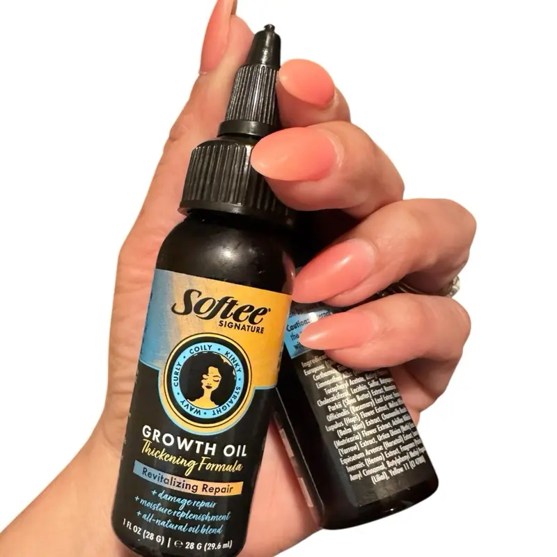 Give your locks back the lusciousness it used to have without breaking the bank with this Thickening Growth Oil from Softee(R). This growth 1-oz. bottle of oil repairs damage, making your hair thicker, shinier, and more manageable. It also replenishes the natural moisture in your hair due to its all-natural ingredients like shea butter, olive oil, and vitamin A, D3, and E.