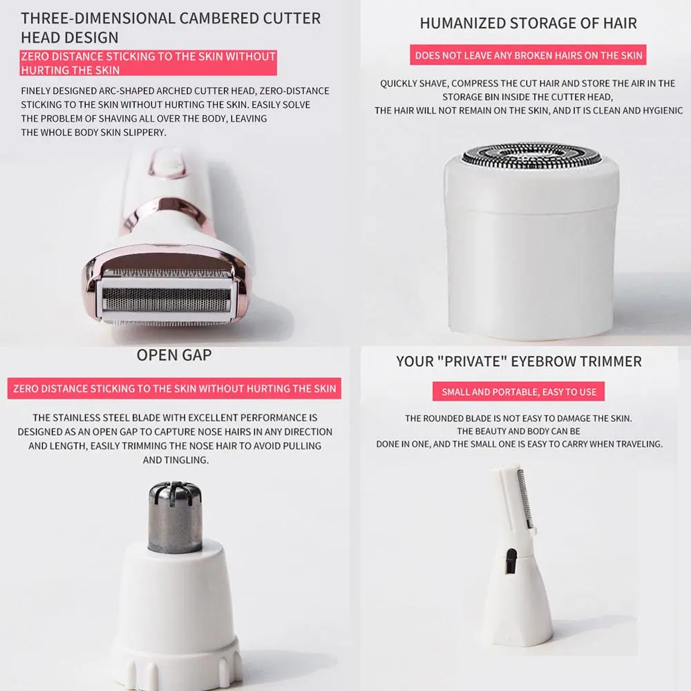 4 in 1 Electric Body Hair Trimmer, 1 Set Portable USB Rechargeable Hair Removal Tool for Face, Nose, Underarm, Eyebrow, Leg and Body