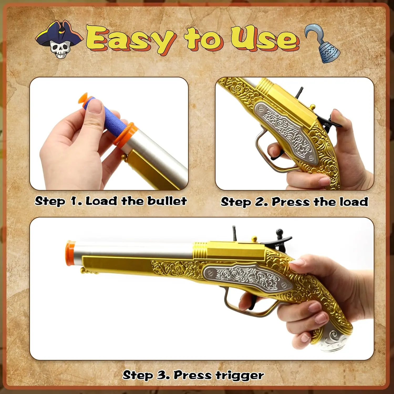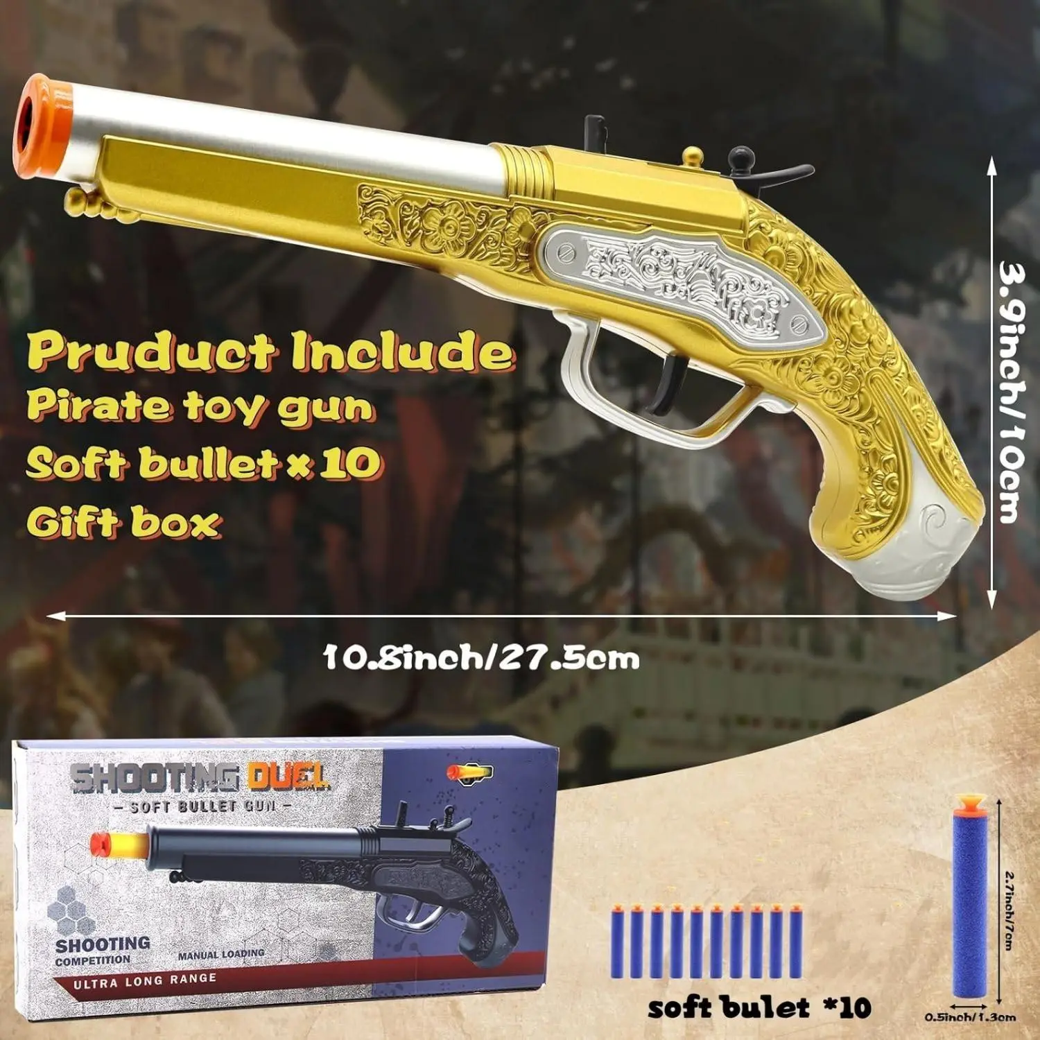 Revolver Soft Gun, Caribbean Firing Pirate Gun with 10 Soft bullet, EVA Children's Toy Small Pistol with Gift, Holiday Toys