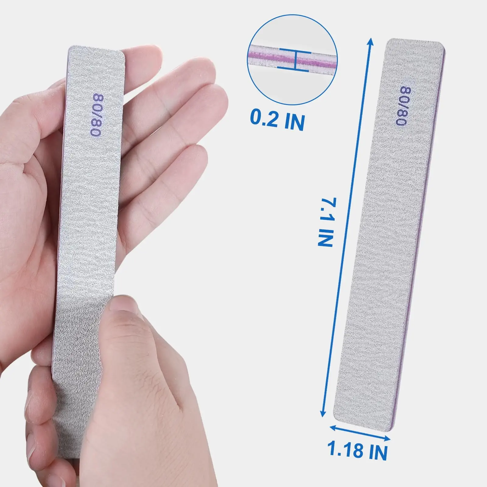 Convenient and Ergonomic Rectangular Design: Our 80/80 nail files feature a dual-sided square shape for easy grip and maneuverability. The wider size enhances nail shaping effectiveness, while the 7.1-inch dimensions make them portable—effortlessly fitting into handbags or luggage.