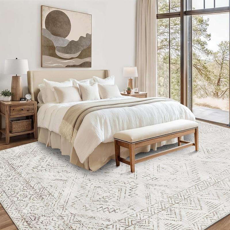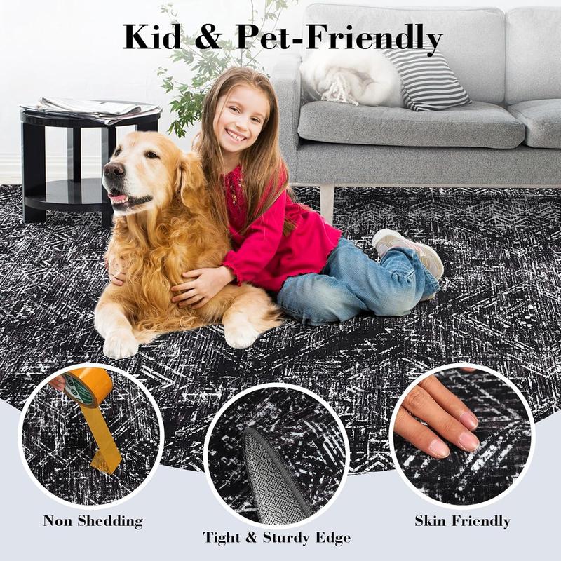 Machine Washable Area Rug: Our low pile and lightweight rug is stain-resistant, simplifying the cleaning process. Machine washable for easy maintenance, simply toss it in the machine for a quick refresh and then either line dry or use an air-only cycle without heat. In case of persistent wrinkles, a low heat iron can be safely applied. Enjoy the ease of maintaining a clean and fresh area rug effortlessly