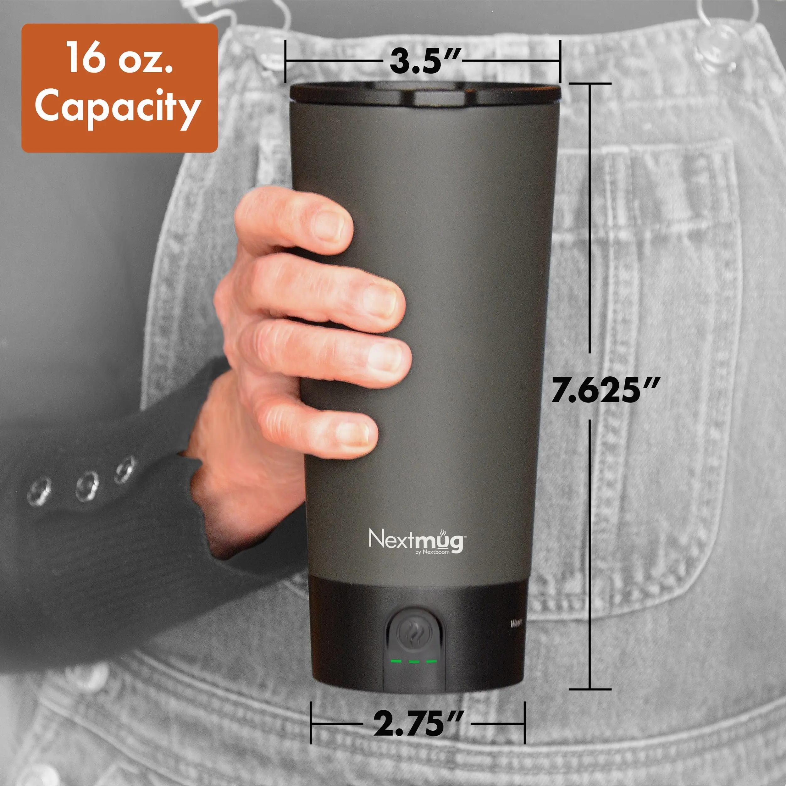 With 16 oz. of liquid capacity, the Nextmug Go is the perfect travel companion. Easily fits into cup holders, backpacks and anywhere while you’re on the go. The Spill-Resistant Go Lid (patent pending) makes sipping on the go easy with no spills or leaks.