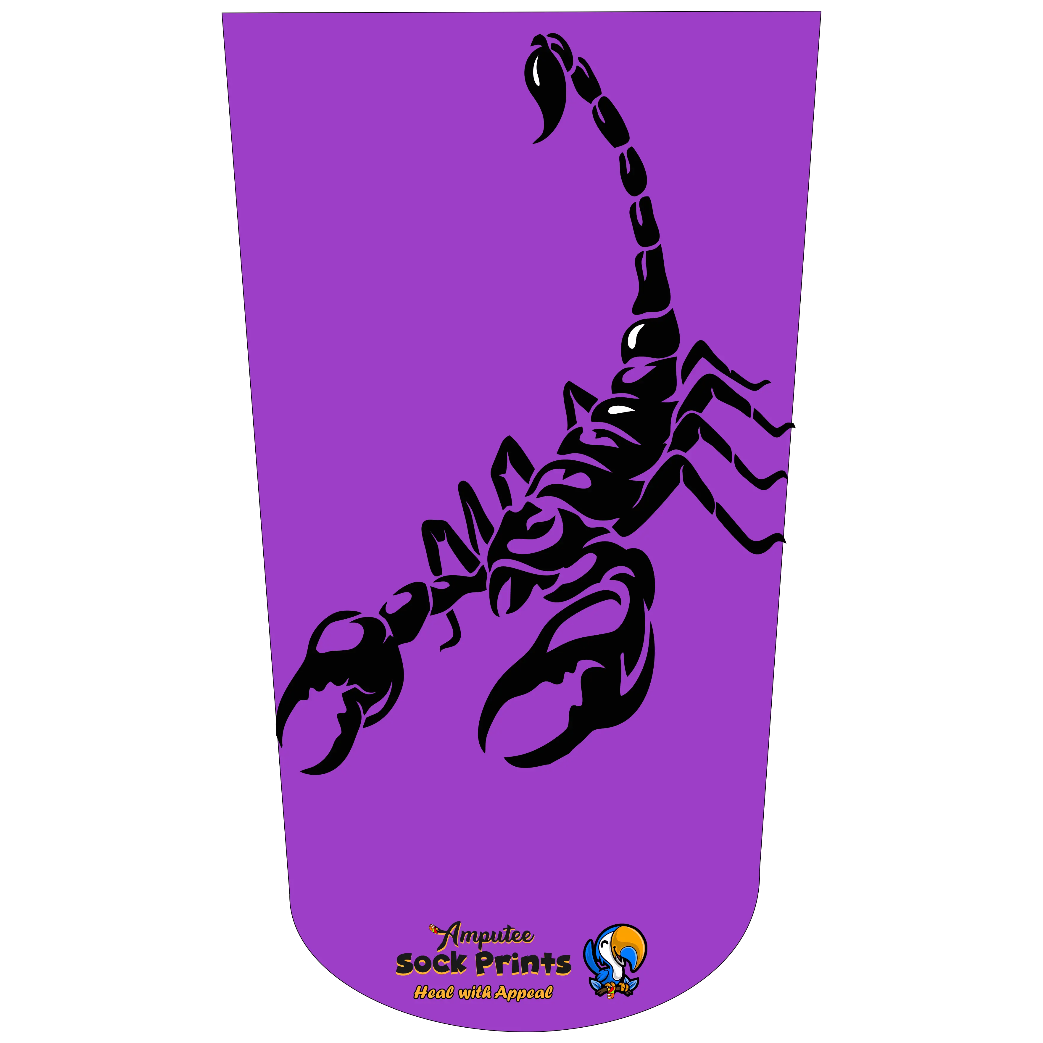 Amputee Sock "Black Scorpion Purple Bgnd Mockup V1", Prosthetic Limb Sock, 3ply Stump Sock