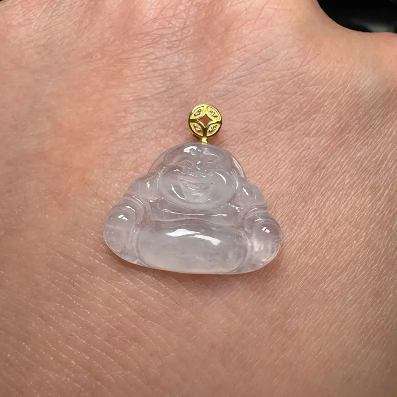 Icy white jadeite Jade Buddha pendant, 18k gold plated clasp