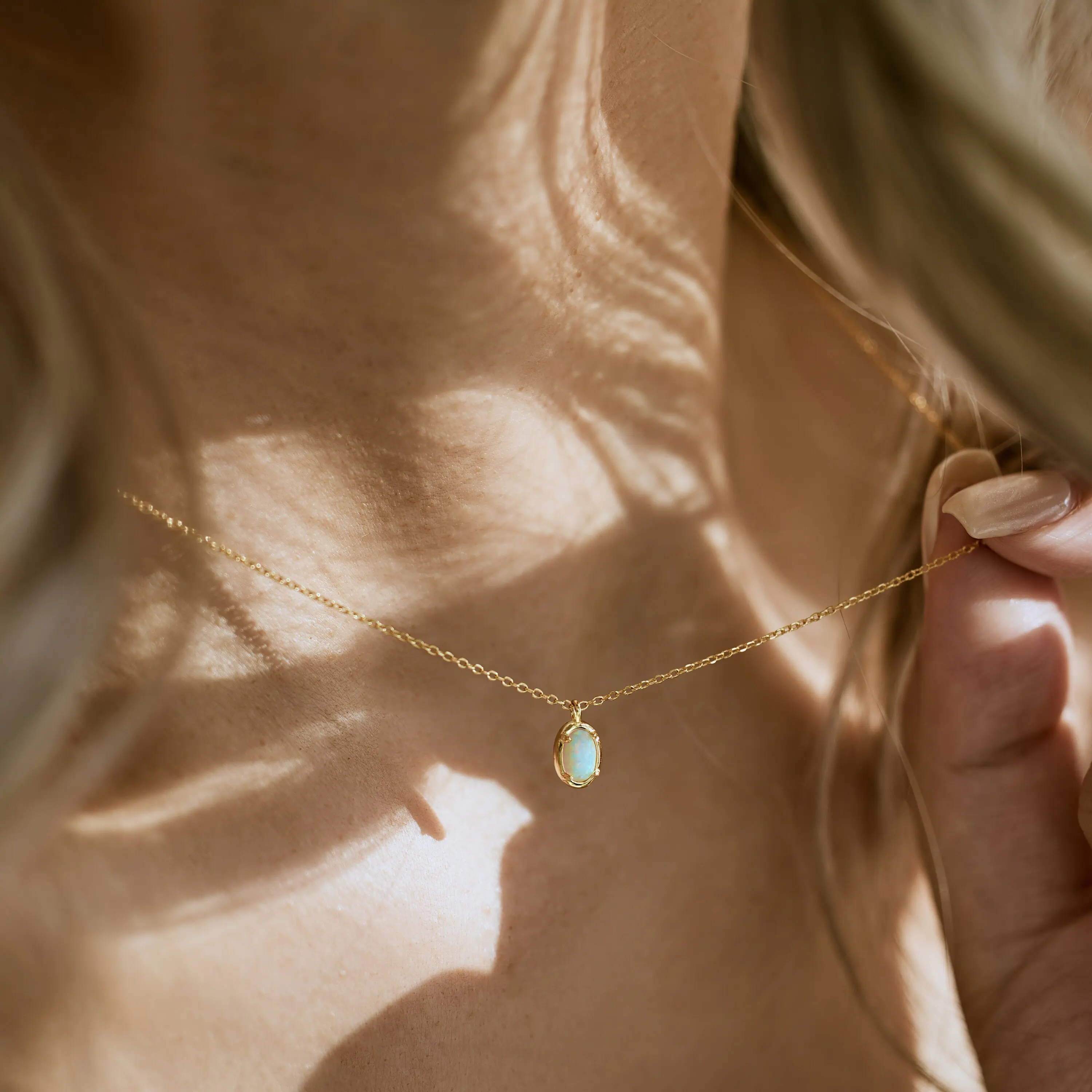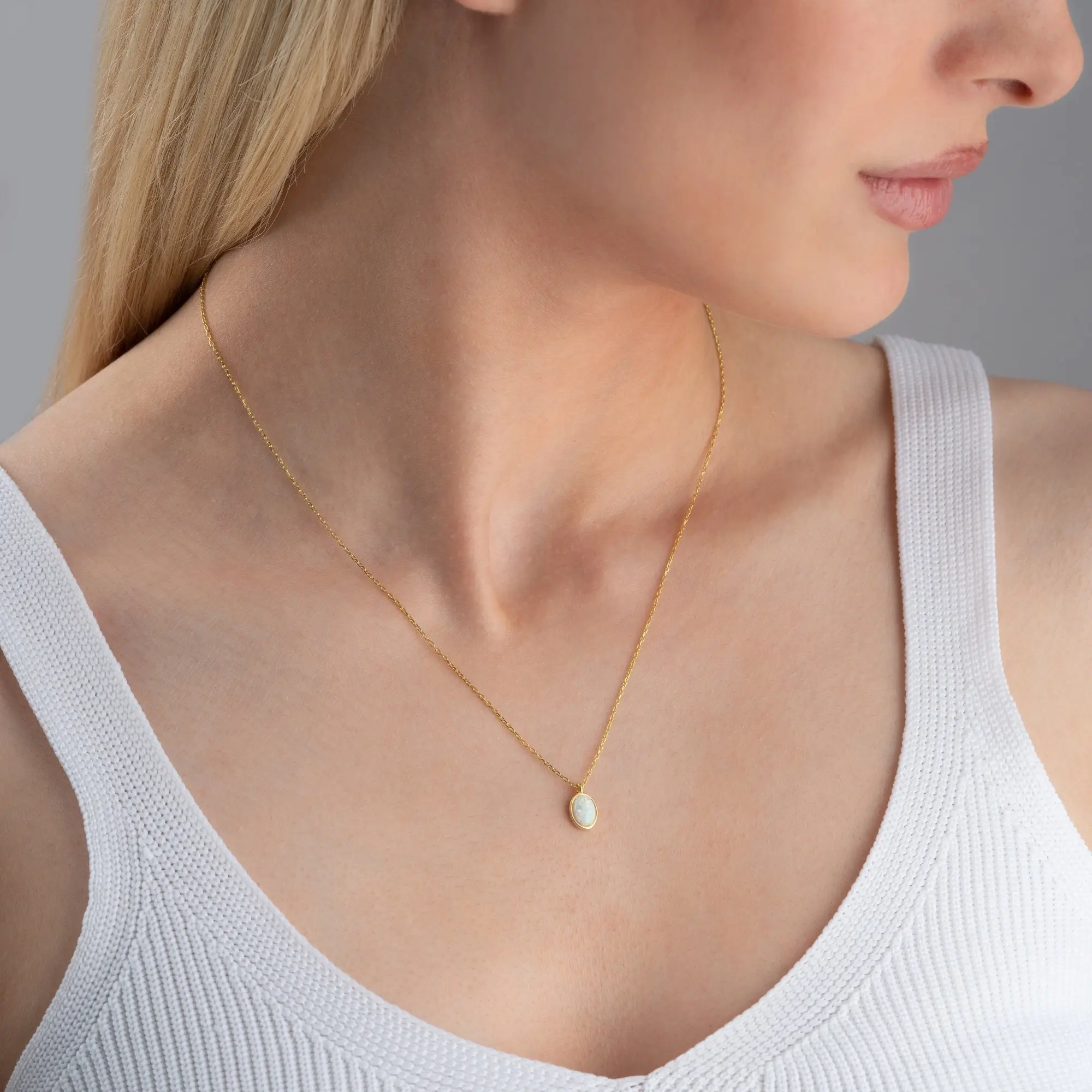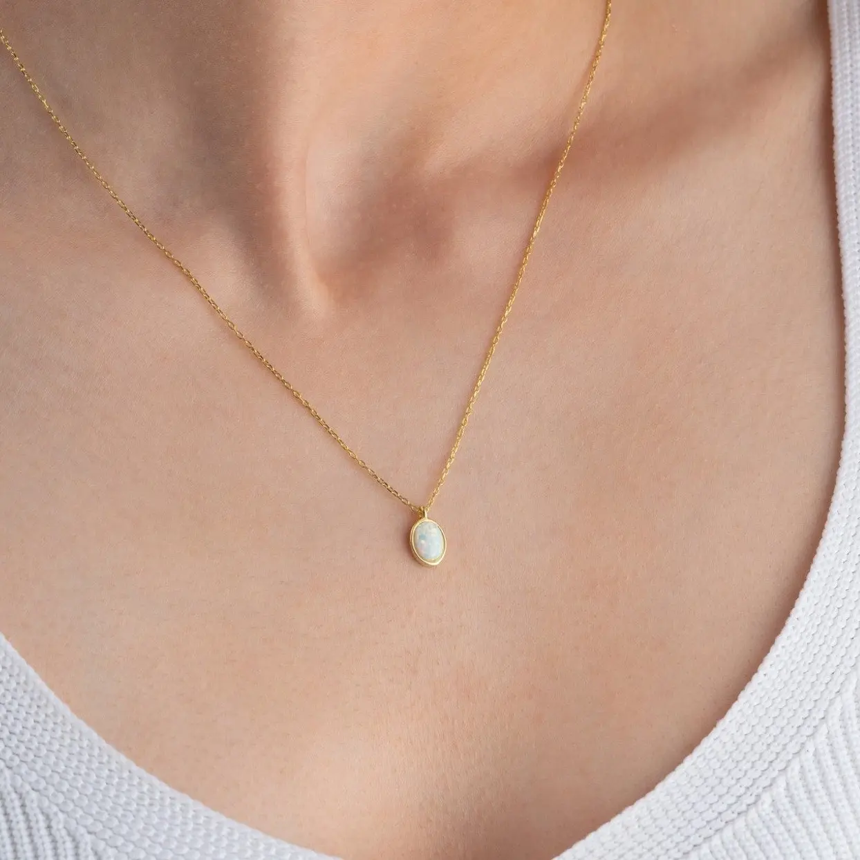 ·Genuine White Opal: A natural, luminous opal set in a dainty oval pendant.