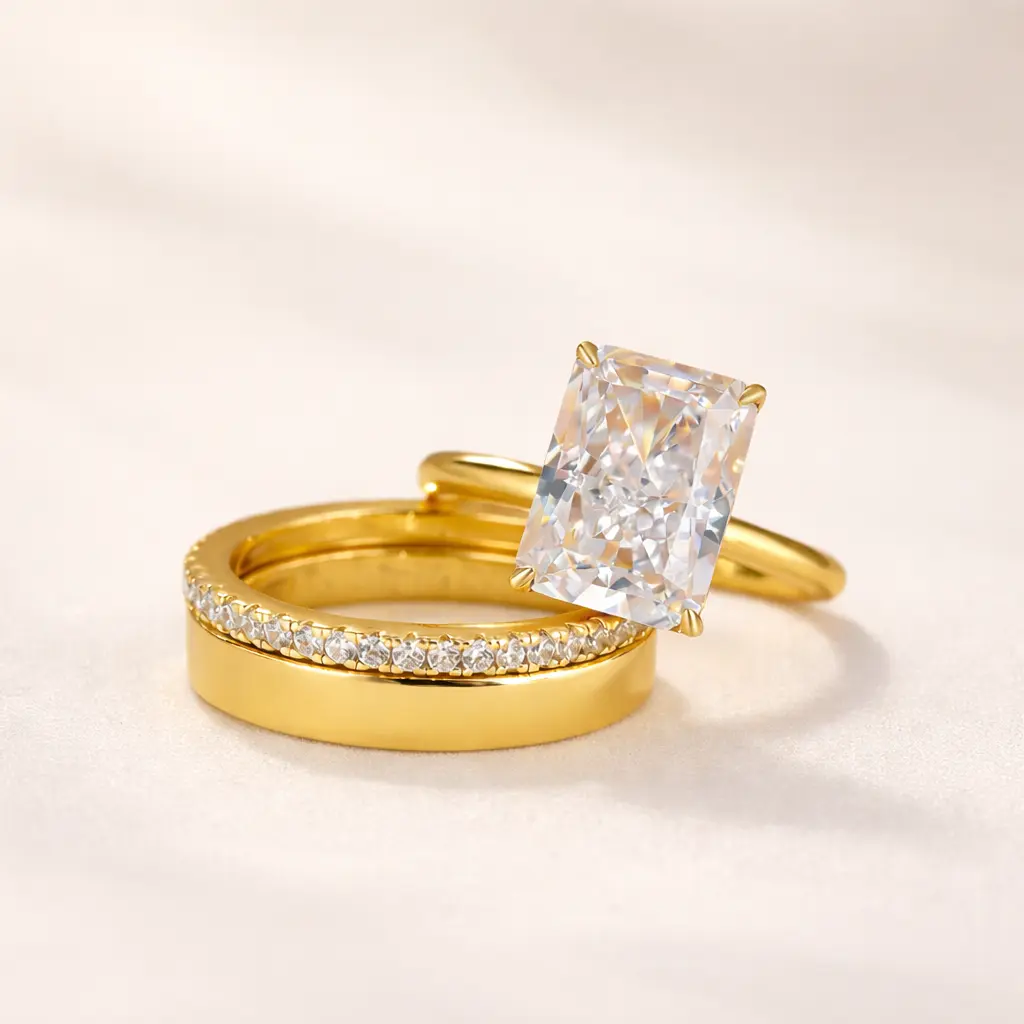 Maxine CZ 4.5ct Radiant Cut 3PC Engagement Ring Set 3PC,Bridal Ring Set,5A Cubic Zirconia Women's Ring Jewelry,Wedding Ring Set for Daily,Travel,Proposal,Birthday,Anniversary