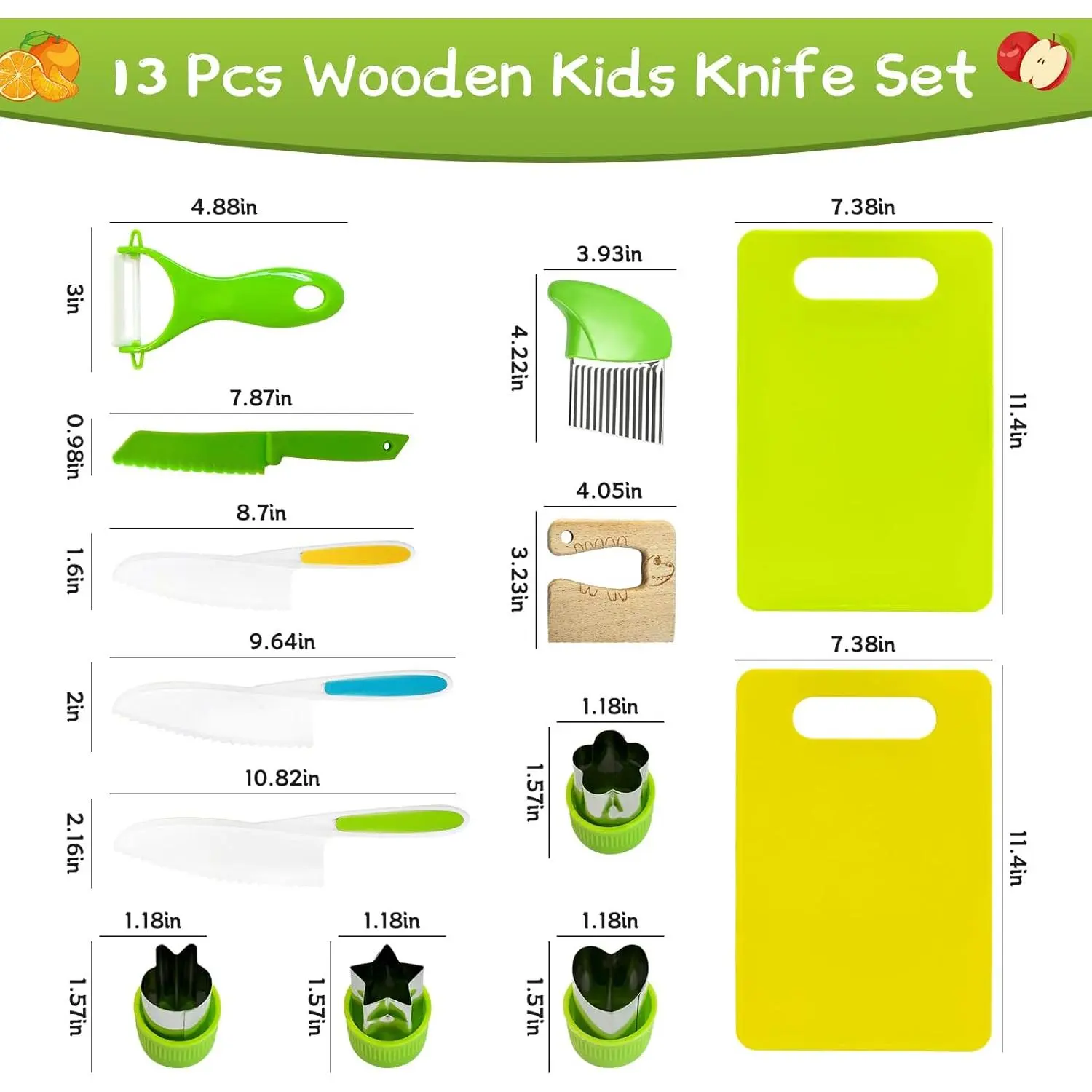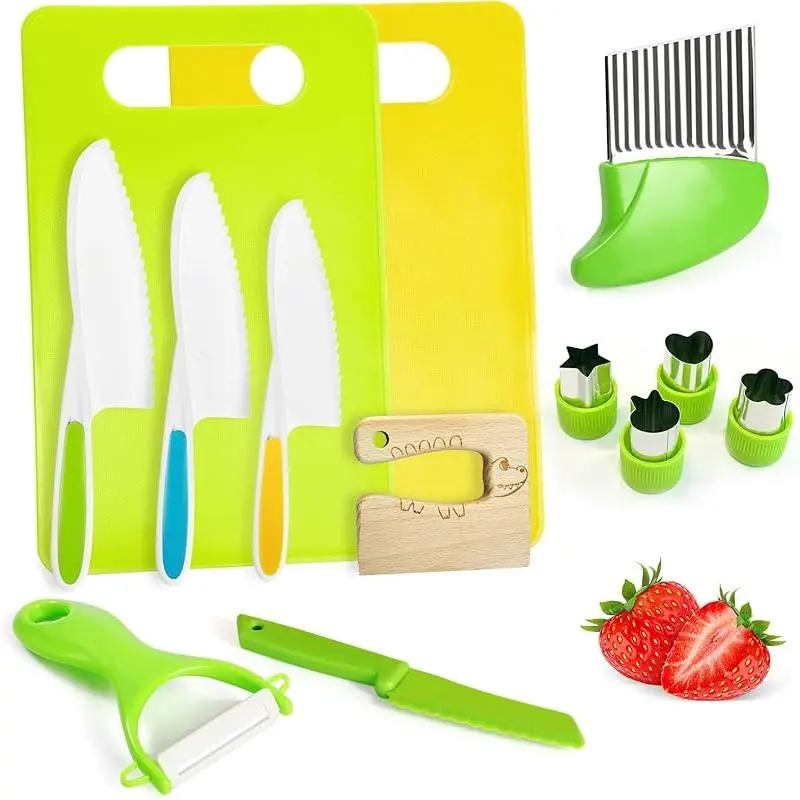 13 Pieces Kids Safe Knife Set for Real Cooking Child-Friendly Plastic Chef Tools Montessori Kitchen Toys for Toddlers with Bright Colors Gifts for Boys and Girls