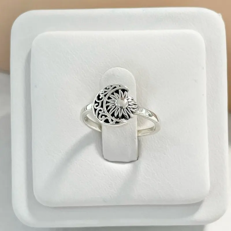 Sterling Silver 925 Moon Half Moon and Sun Ring Jewelry